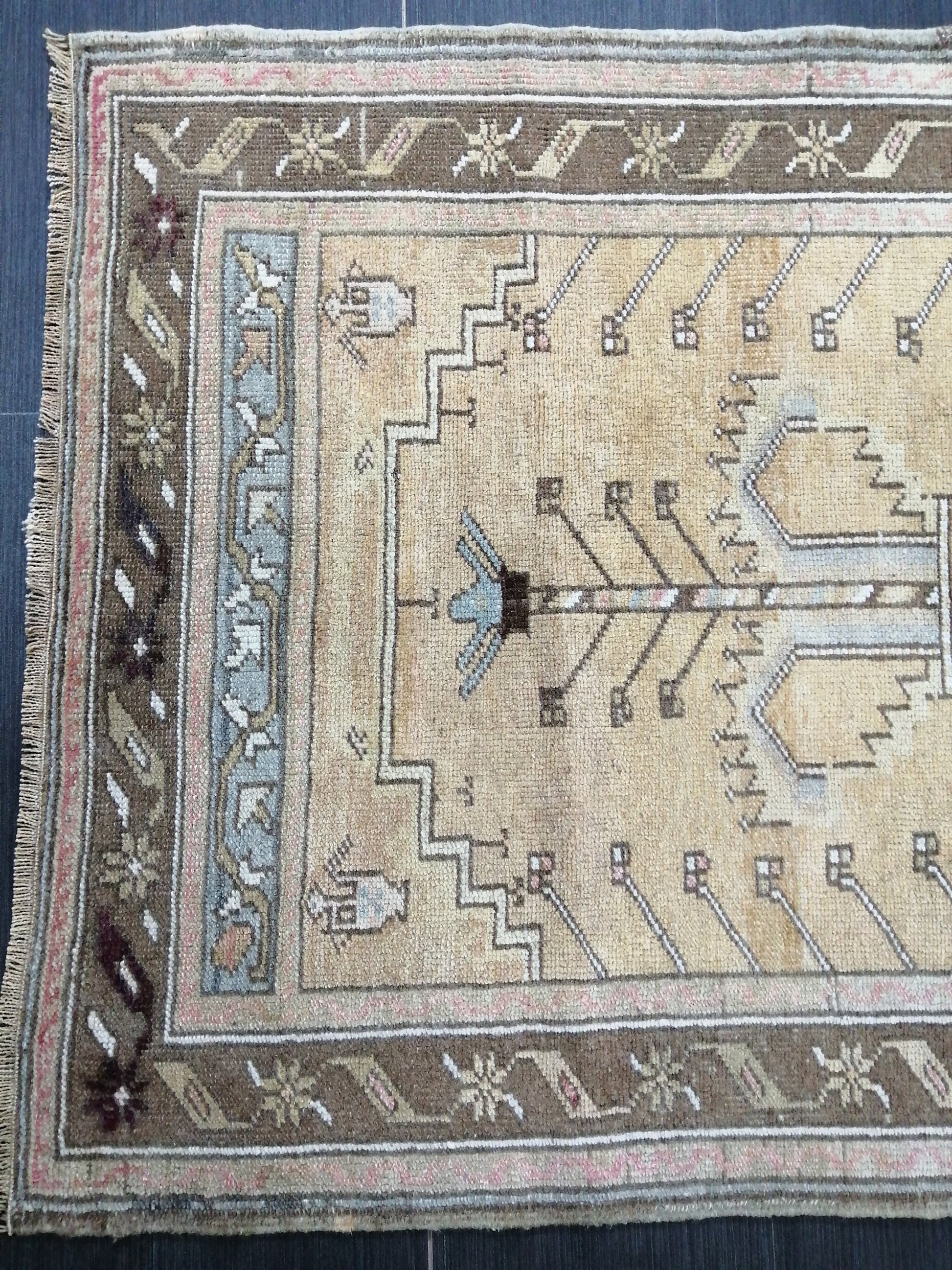 *A vintage handmade Turkish rug made of hand spun wool and double knotted on sturdy foundation,