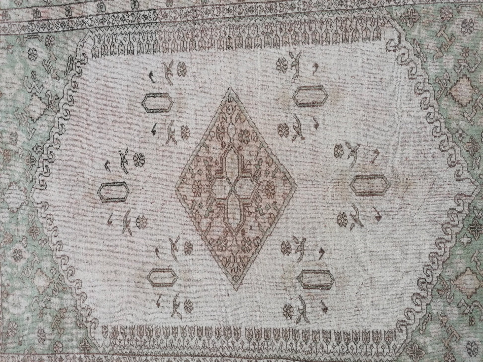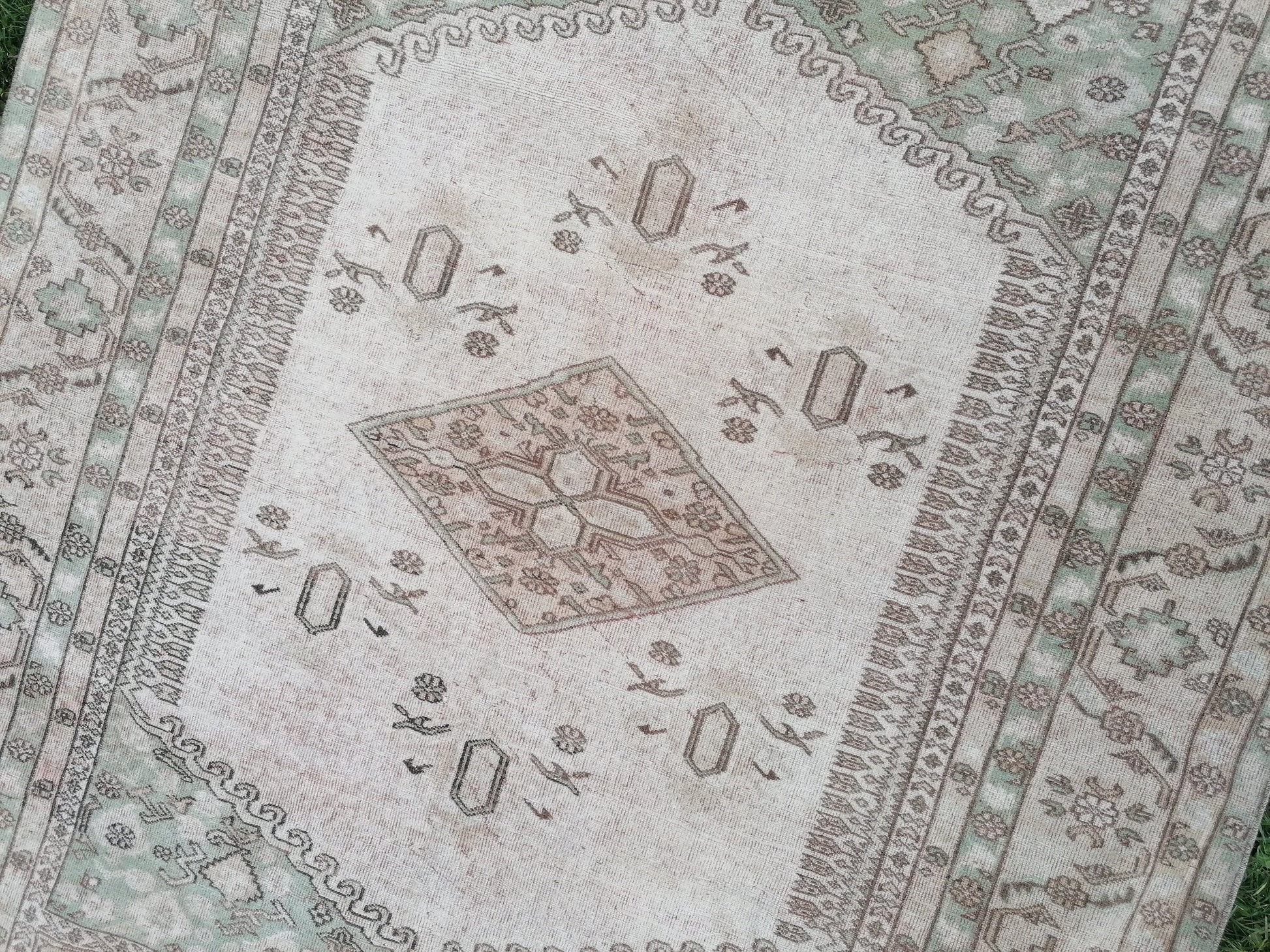 5'6x7'6 faded oushak wool rug large muted turkısh rug, neutral vıntage handmade rug, kıtchen rug