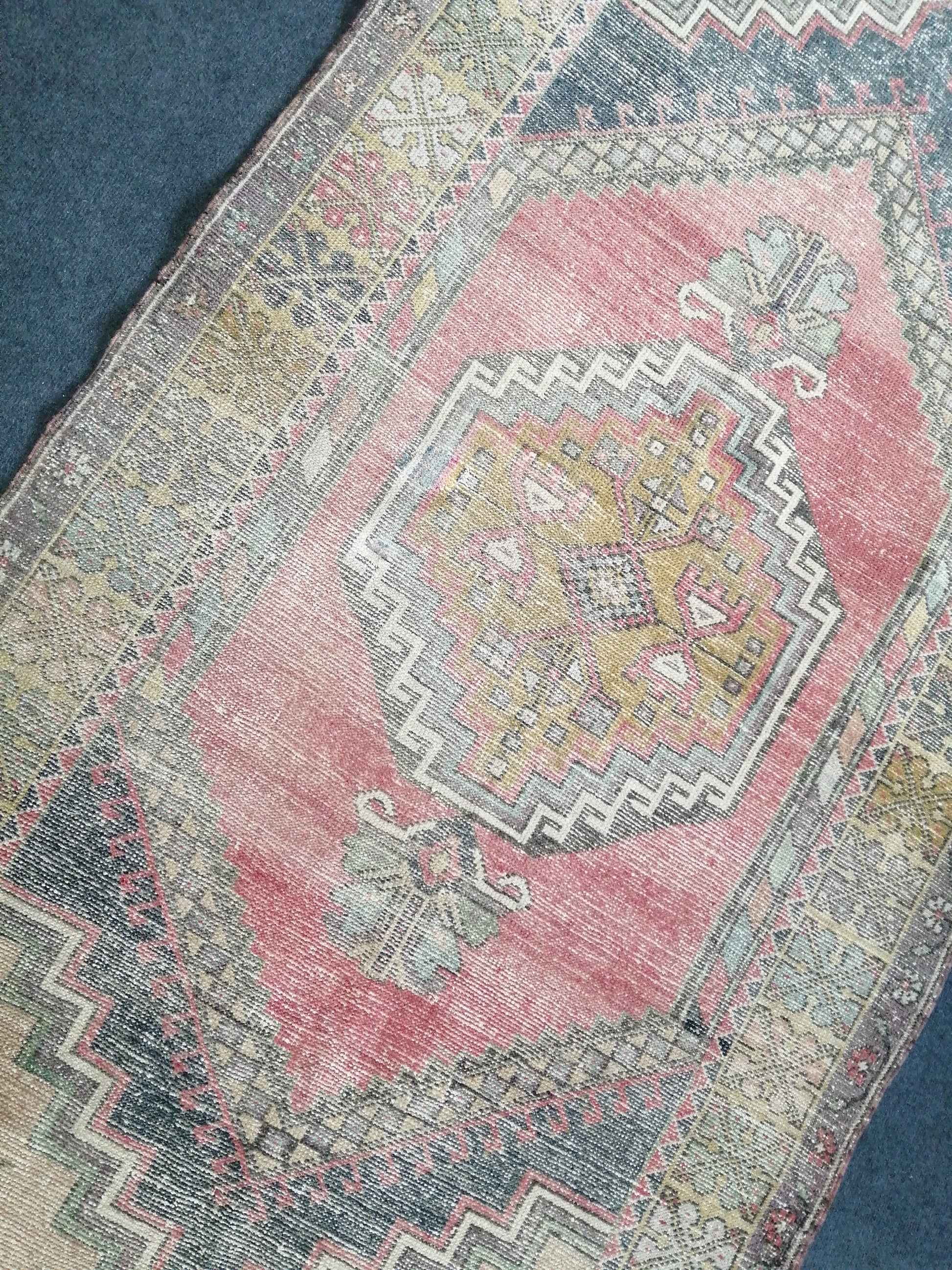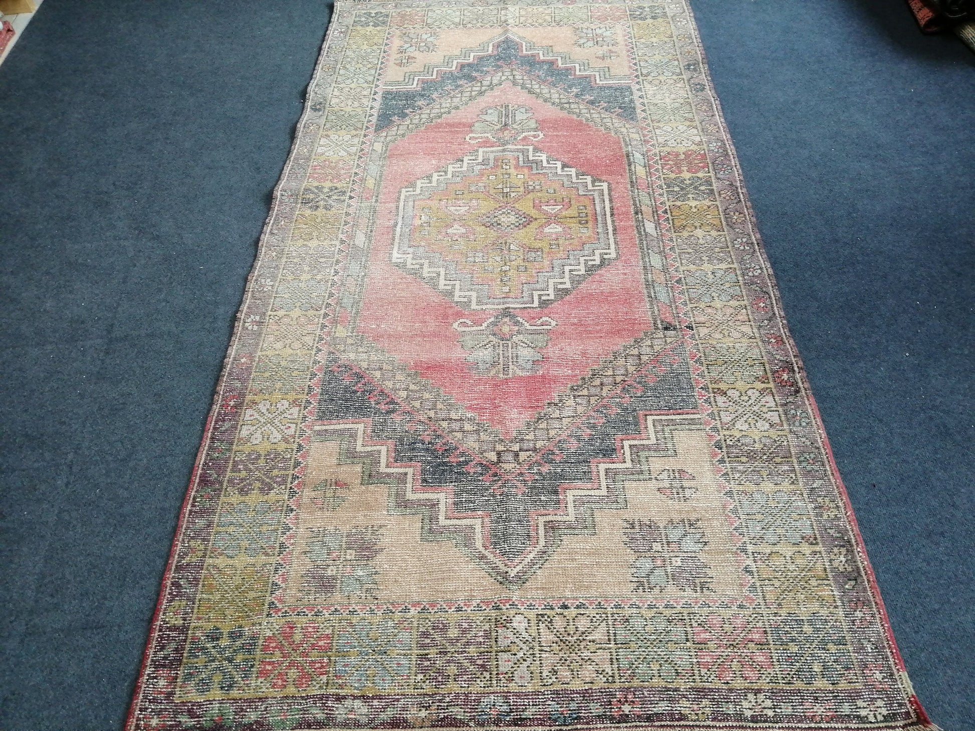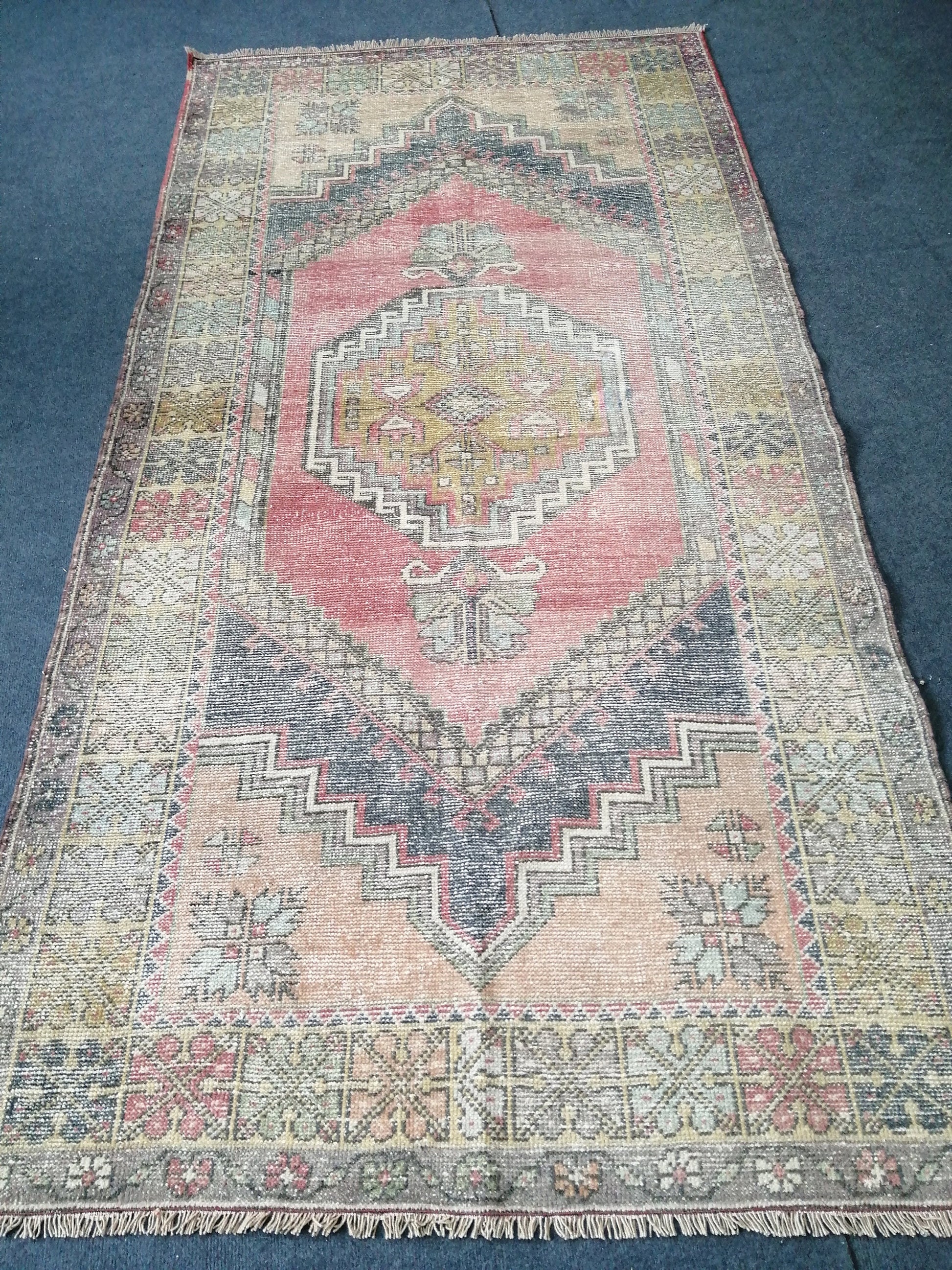 *A vintage handmade Turkish rug made of hand spun wool and double knotted on sturdy foundation,