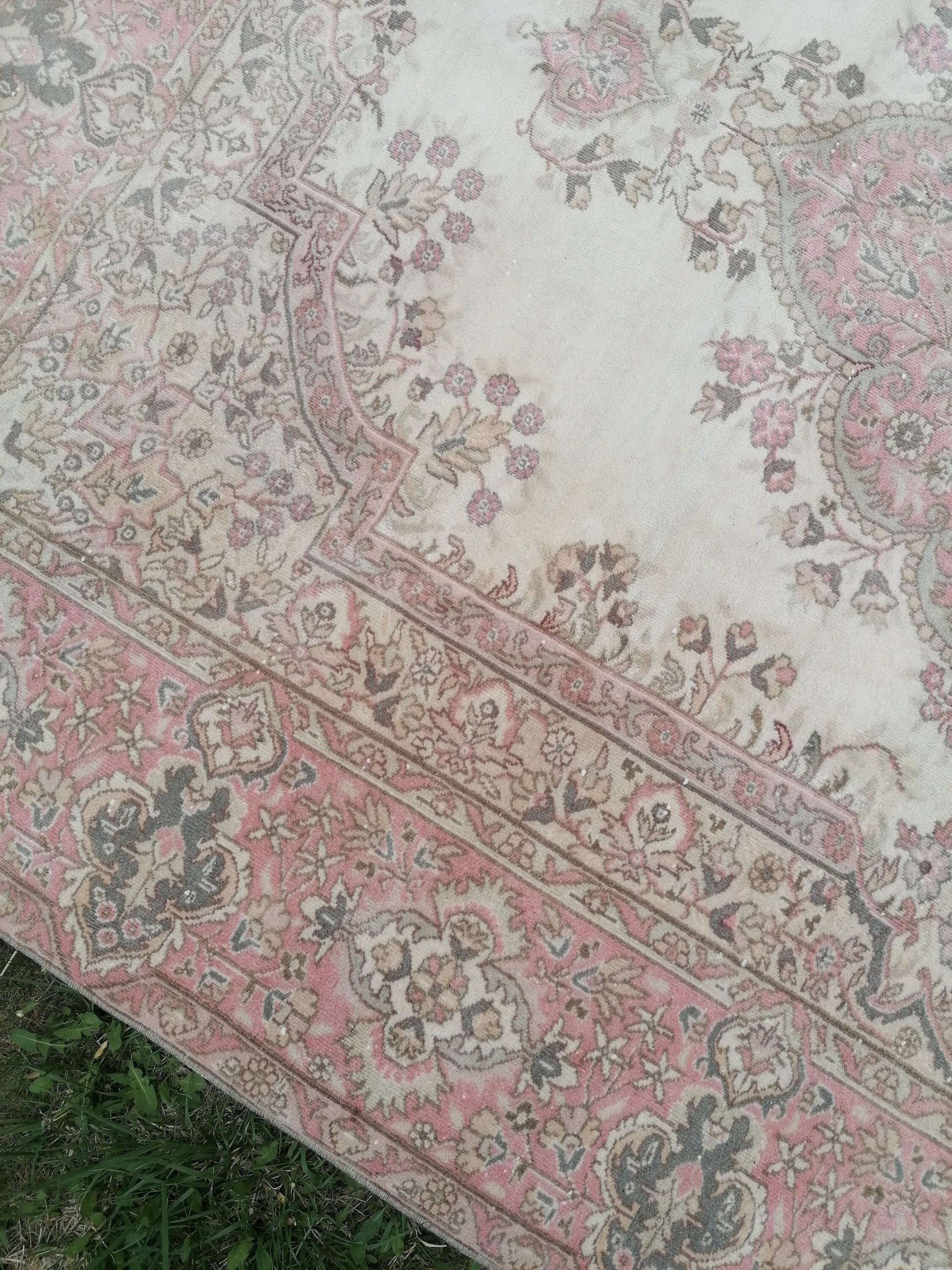 6.10 x 9.8 soft pink turkish rug, vintage rug, large vintage rug, wool oushak rug handmade rug