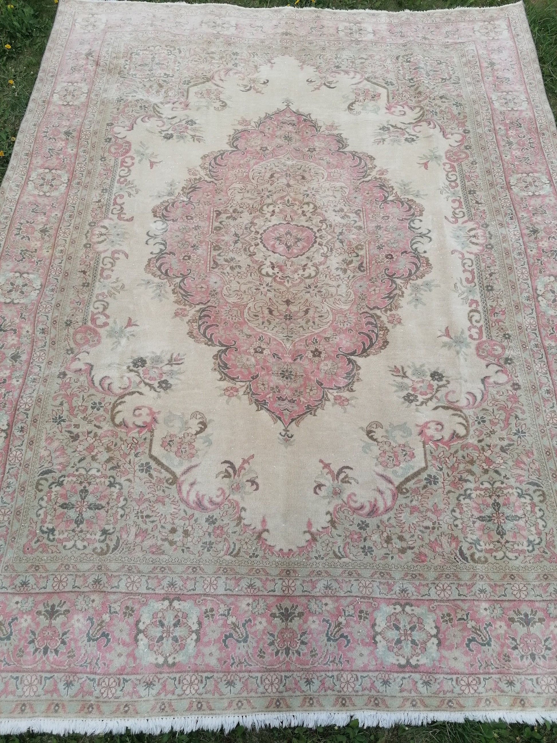 6.7 x 8.7 Vintage rug, pastel vintage oushak rug, unique handmade rug, traditional turkish rug