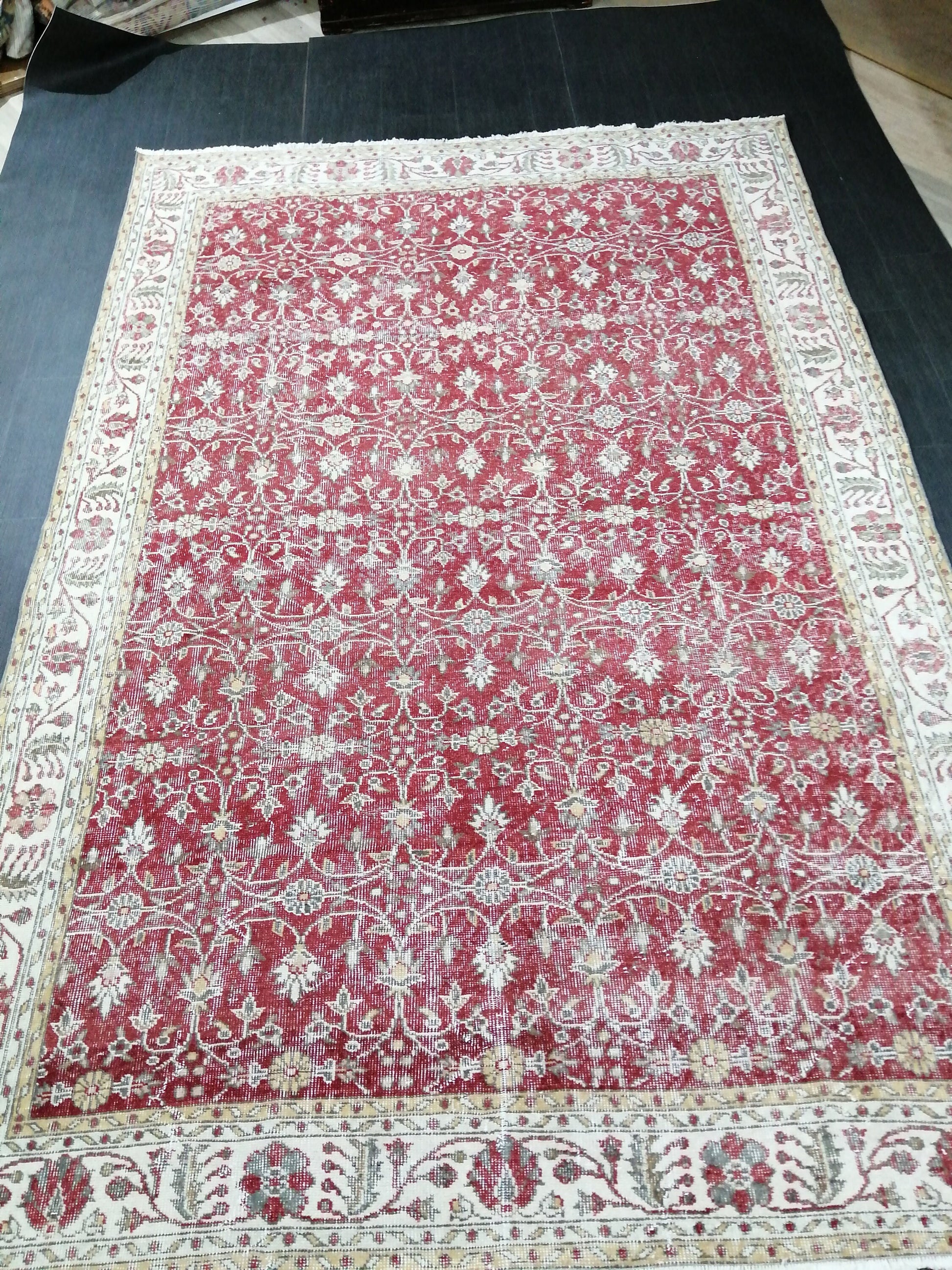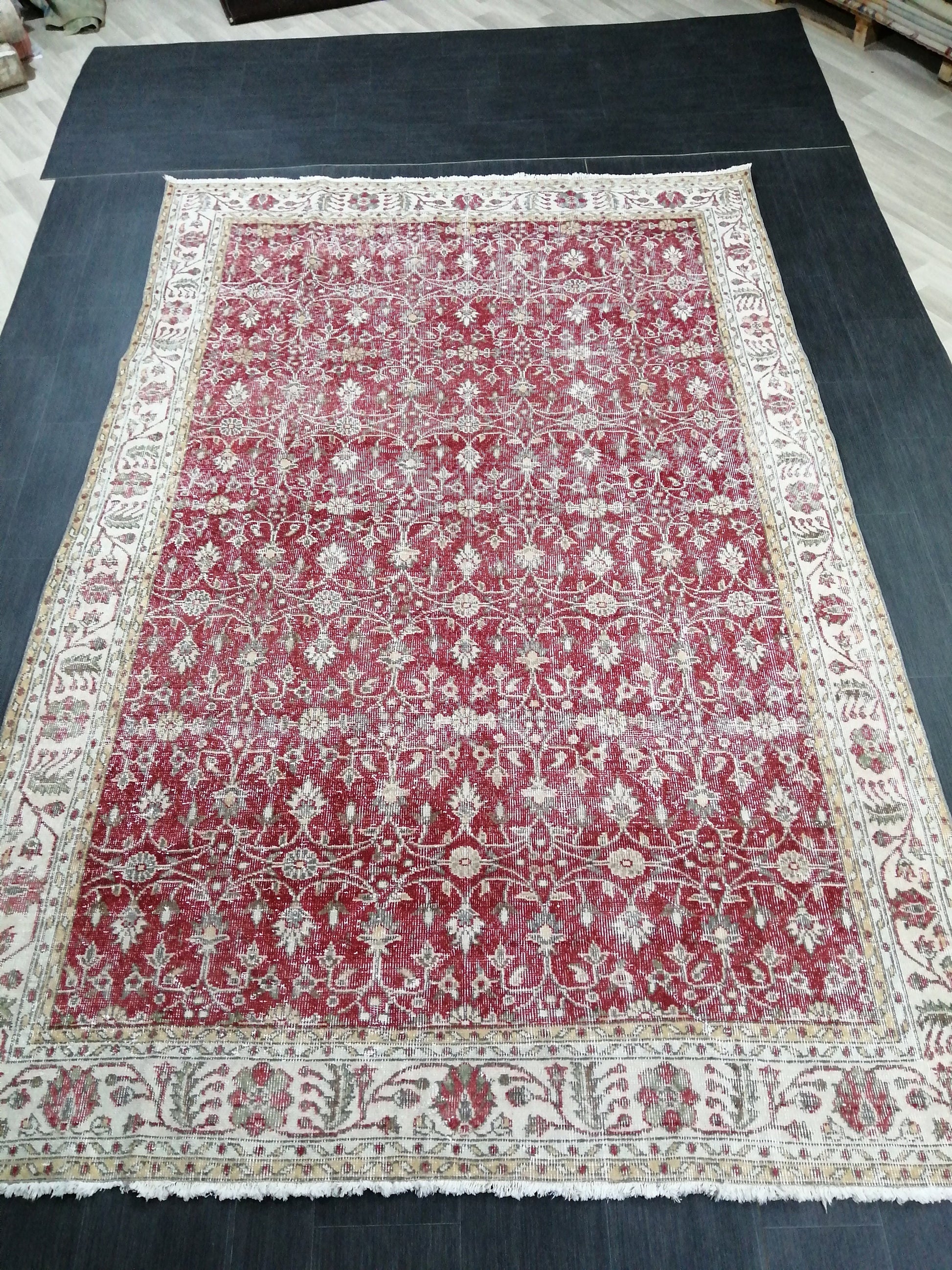 6.8 x 10 TURKISH HAND MADE Rugs Vintage Turkish Rugs Oushak Rug Traditional Rug, Oriental Oushak Rug, Vintage Floral Rug Red Wool Rug
