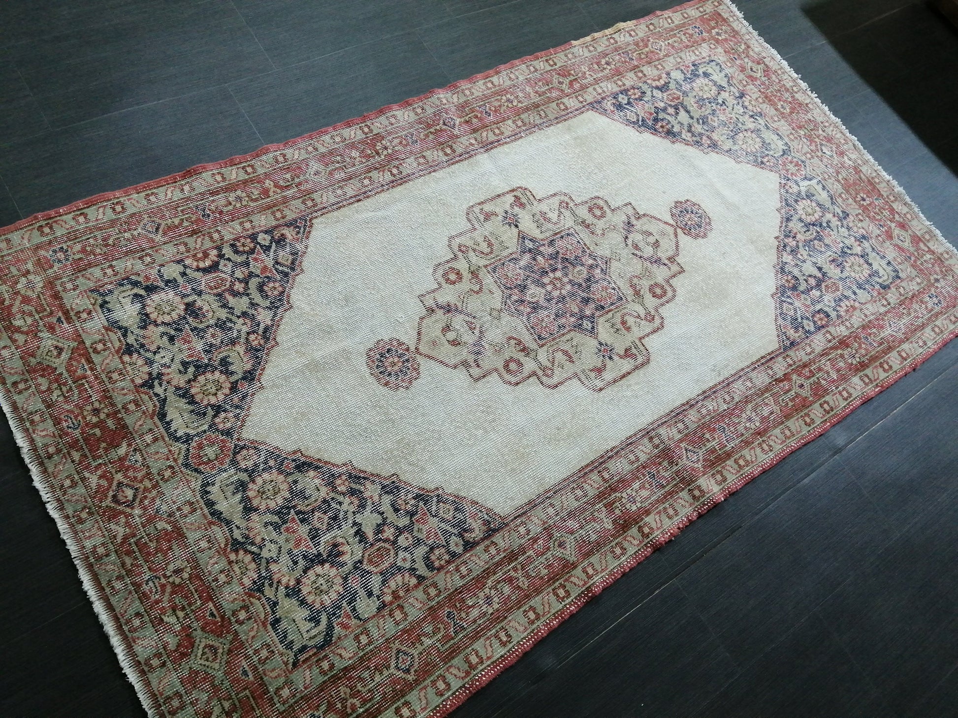 *A vintage handmade Turkish rug made of hand spun wool and double knotted on sturdy foundation,