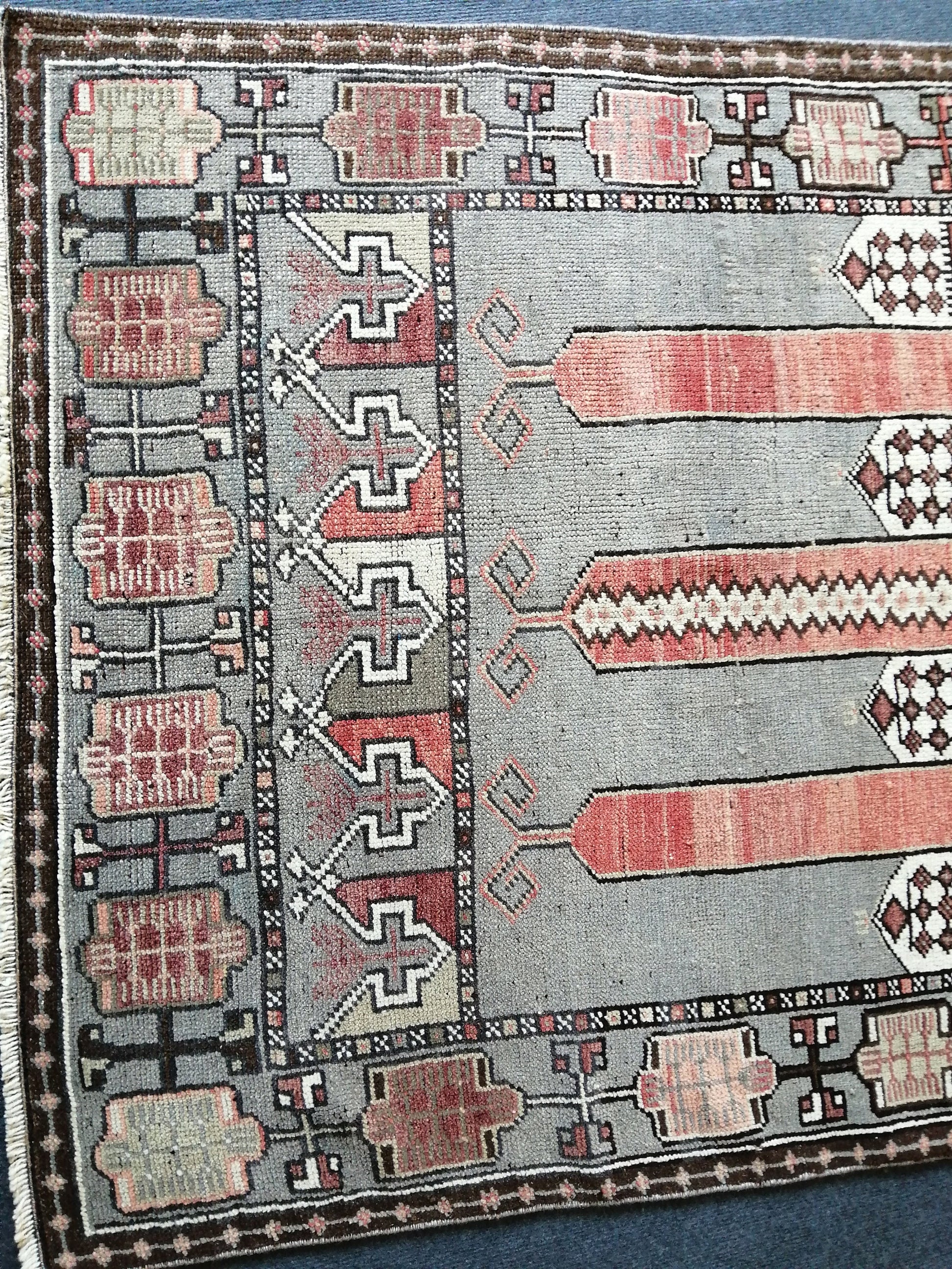 *A vintage handmade Turkish rug made of hand spun wool and double knotted on sturdy cotton foundation,