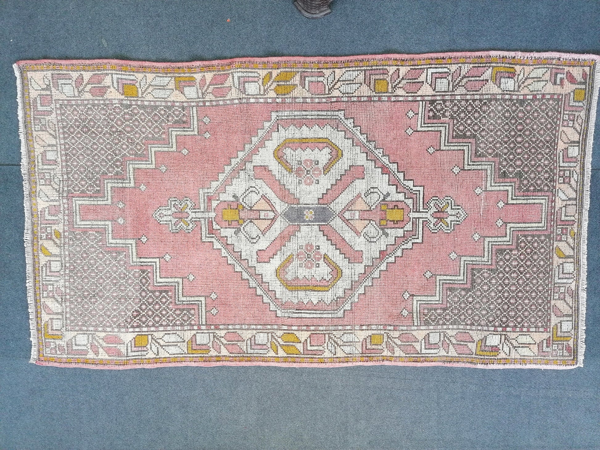 6'4x3'7 vintage turkish rug, pink turkish rug, oushak vintage rug, kitchen rug,vintage anatolian bohemian rug,unique hand made bohemian