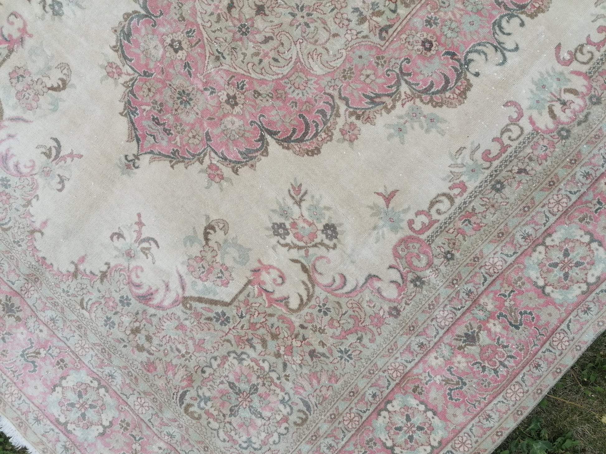 6'7x8'7 Vintage rug, pastel vintage oushak rug faded unique handmade rug, traditional turkish rug
