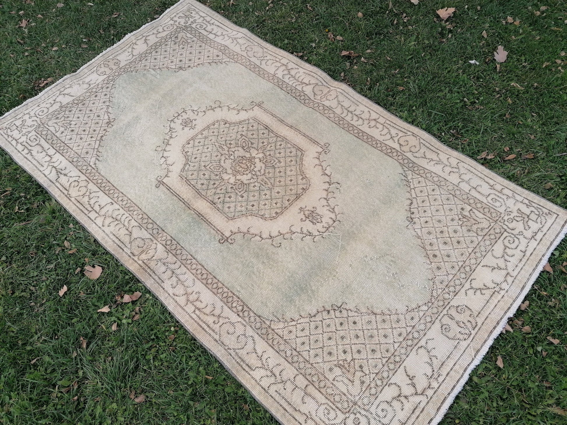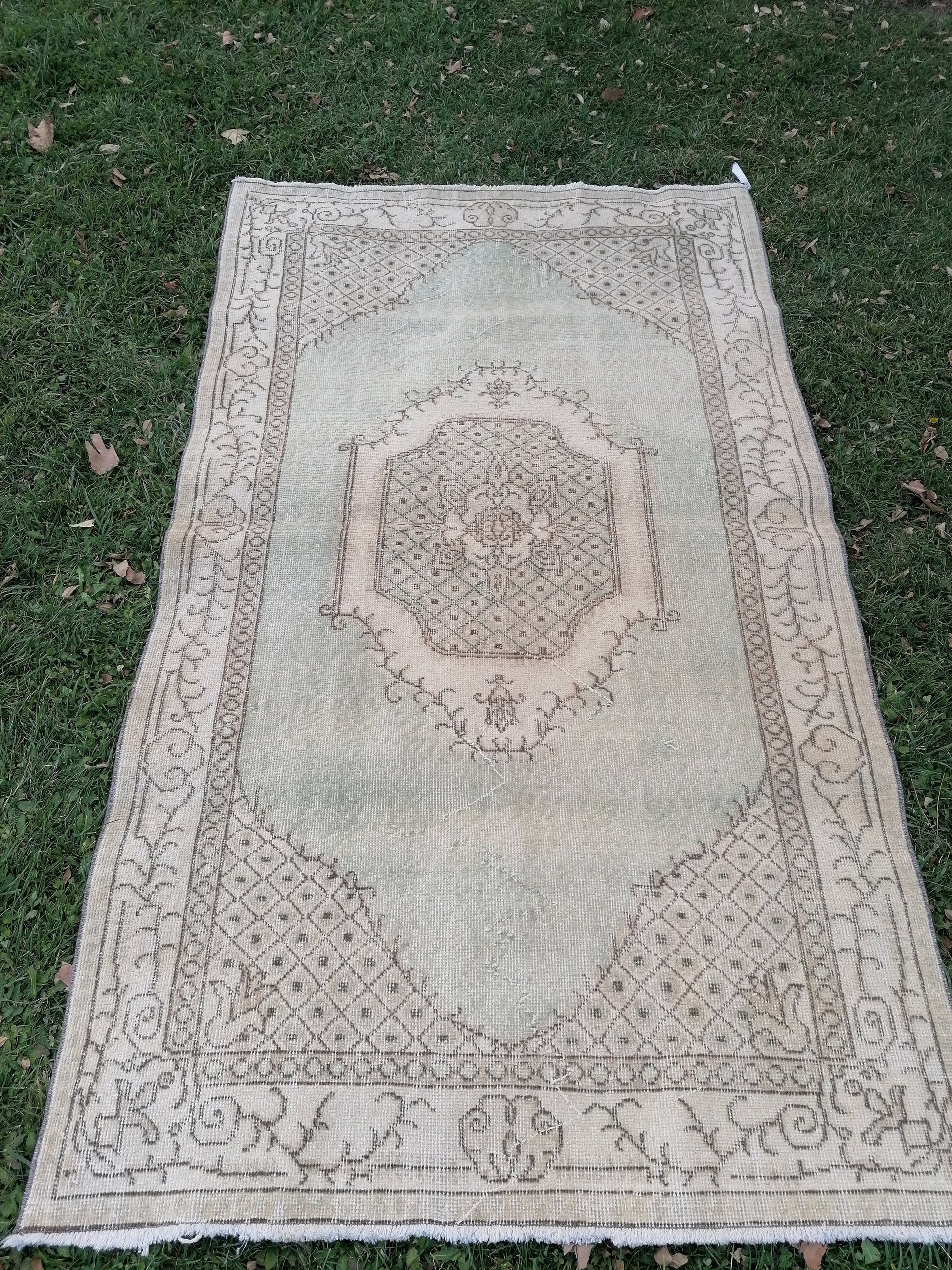 6'8x3'10 muted vintage rug, turkısh rug, oushak turkısh rug, kıtchen rug,wool area rug,kıtchen oushak rug