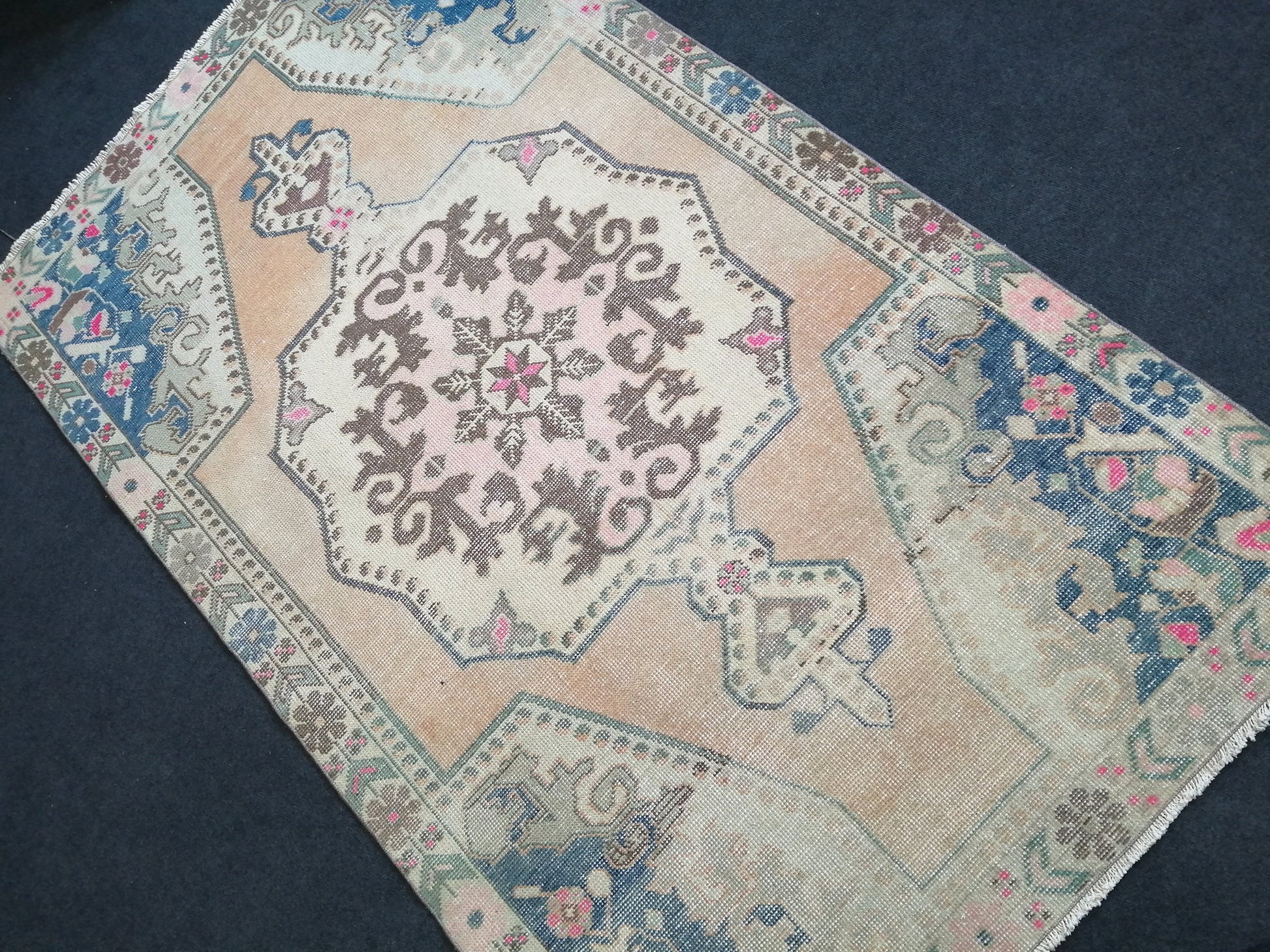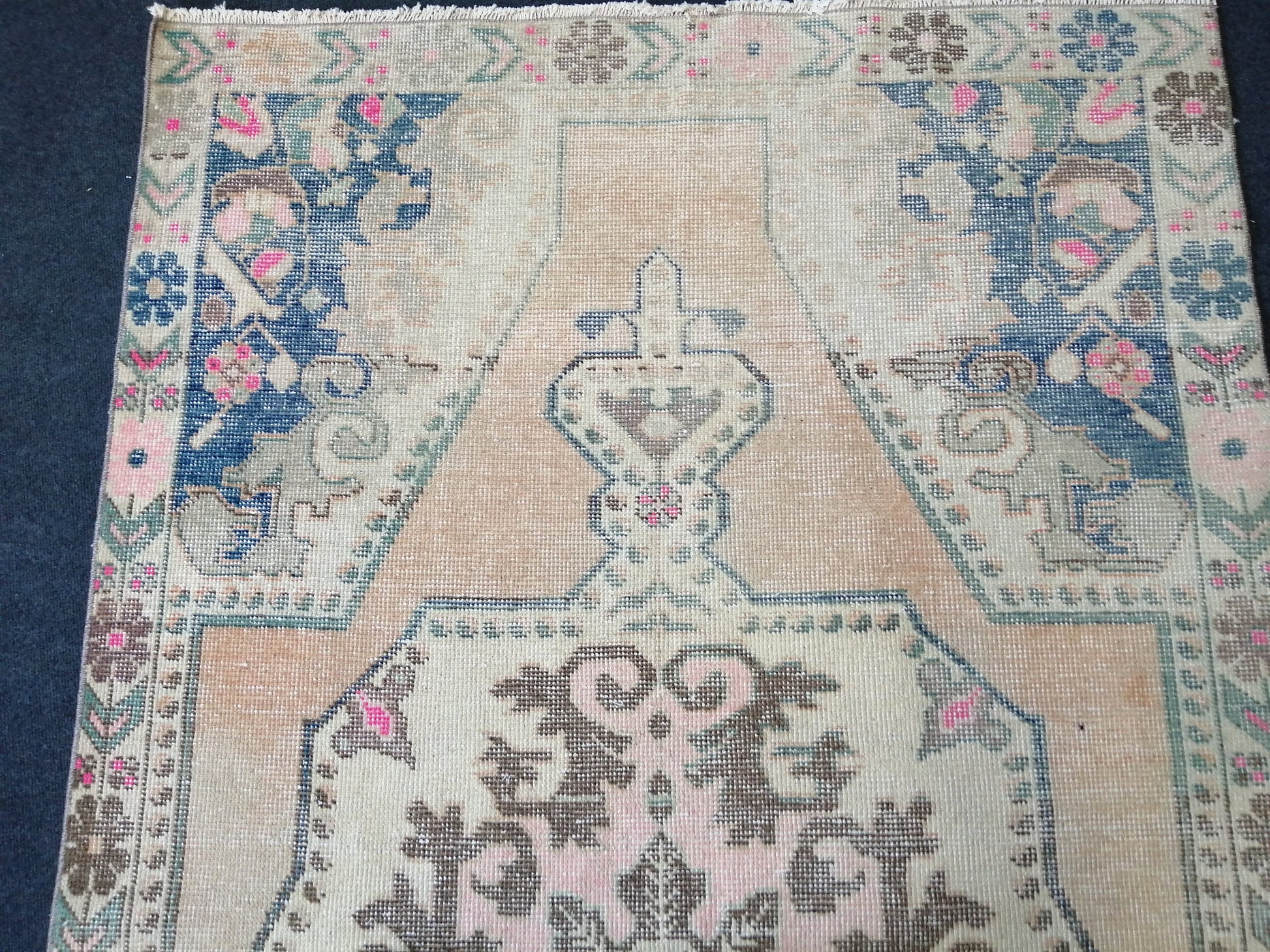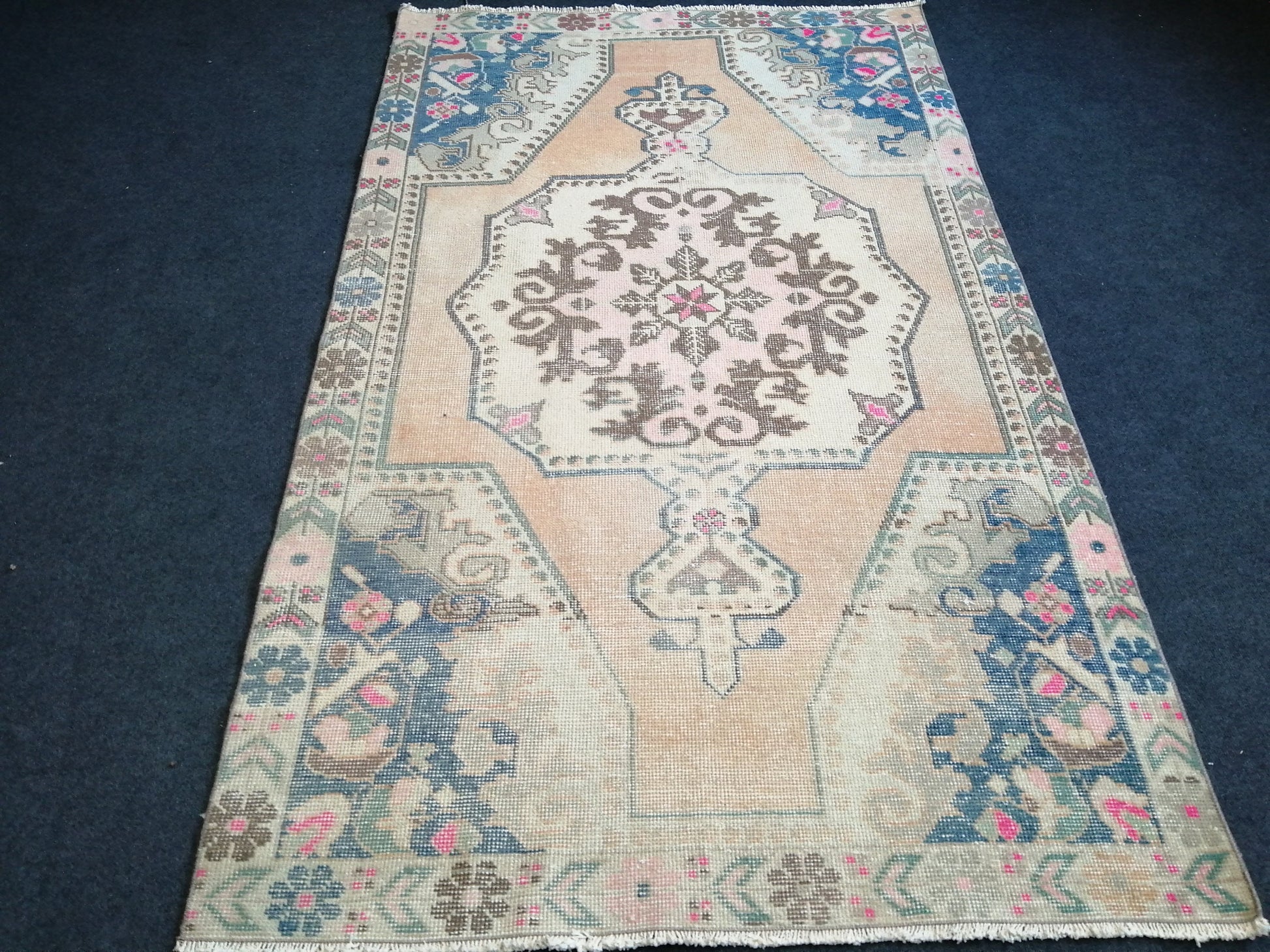 *A vintage handmade Turkish rug made of hand spun wool and double knotted on sturdy cotton foundation,