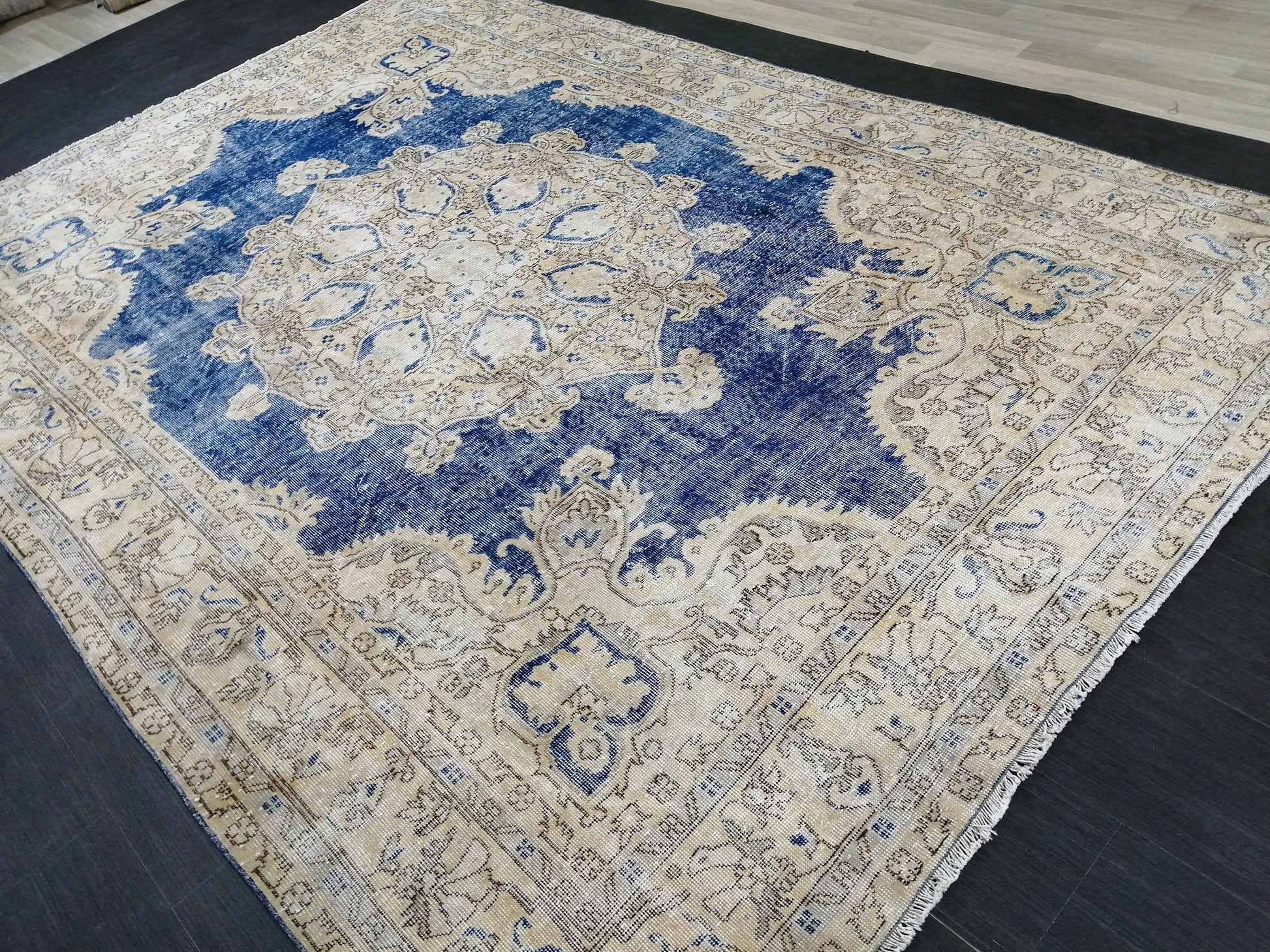7.5 x 11 Blue OUSHAK RUG TURKISH Distressed Oushak Rug Vintage Rug Vintage Rug Wool Oriental Rug Handmade Rug Hand-knotted Turkish Rug