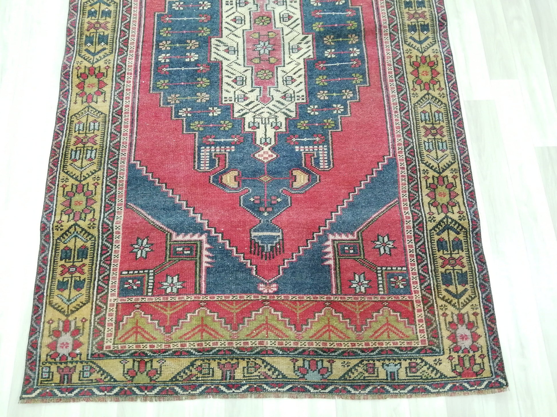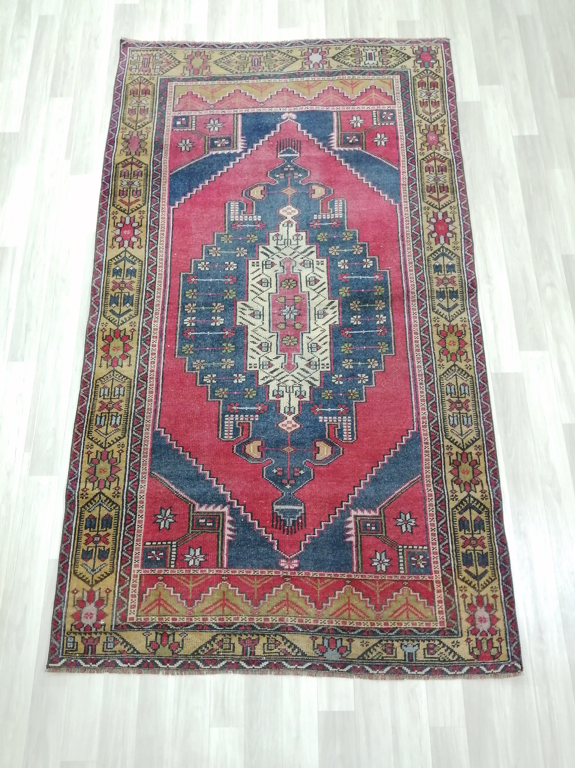 *A vintage handmade Turkish rug made of hand spun wool and double knotted on sturdy foundation,