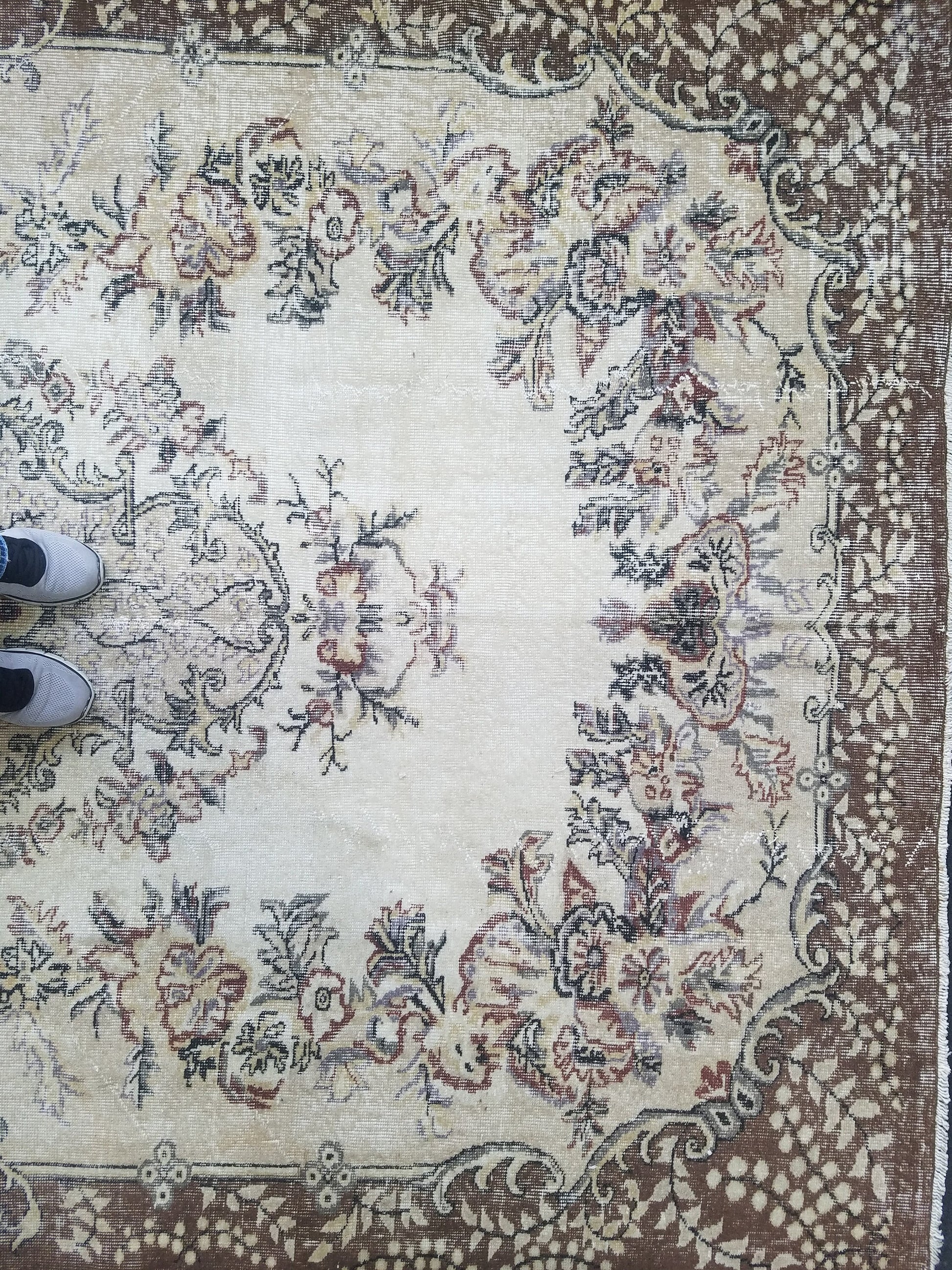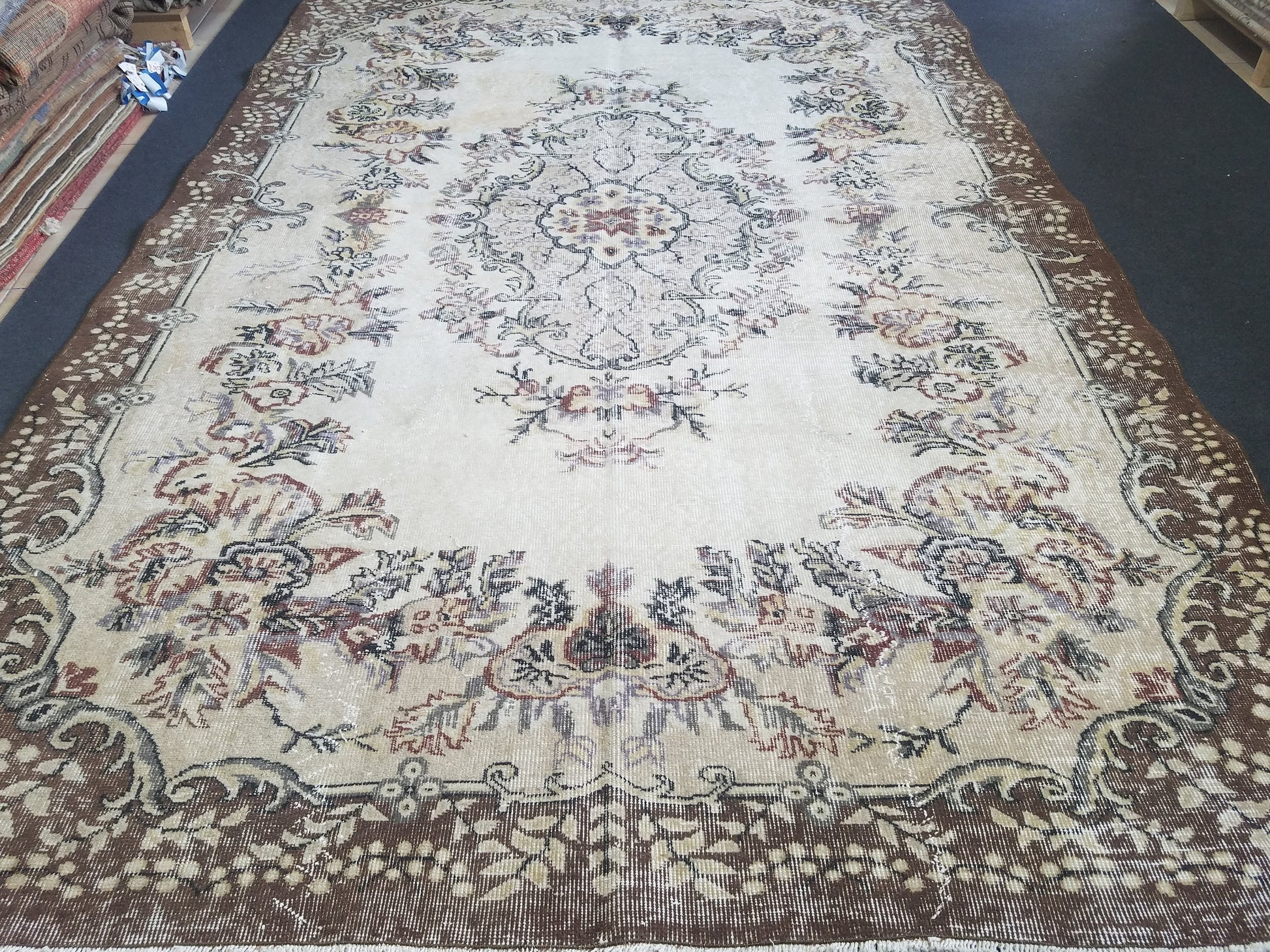 7x10 feet large oushak wool rug, turkish handmade oversize area rug, muted living room rug, vintage dining room wool rug,kids room large rug