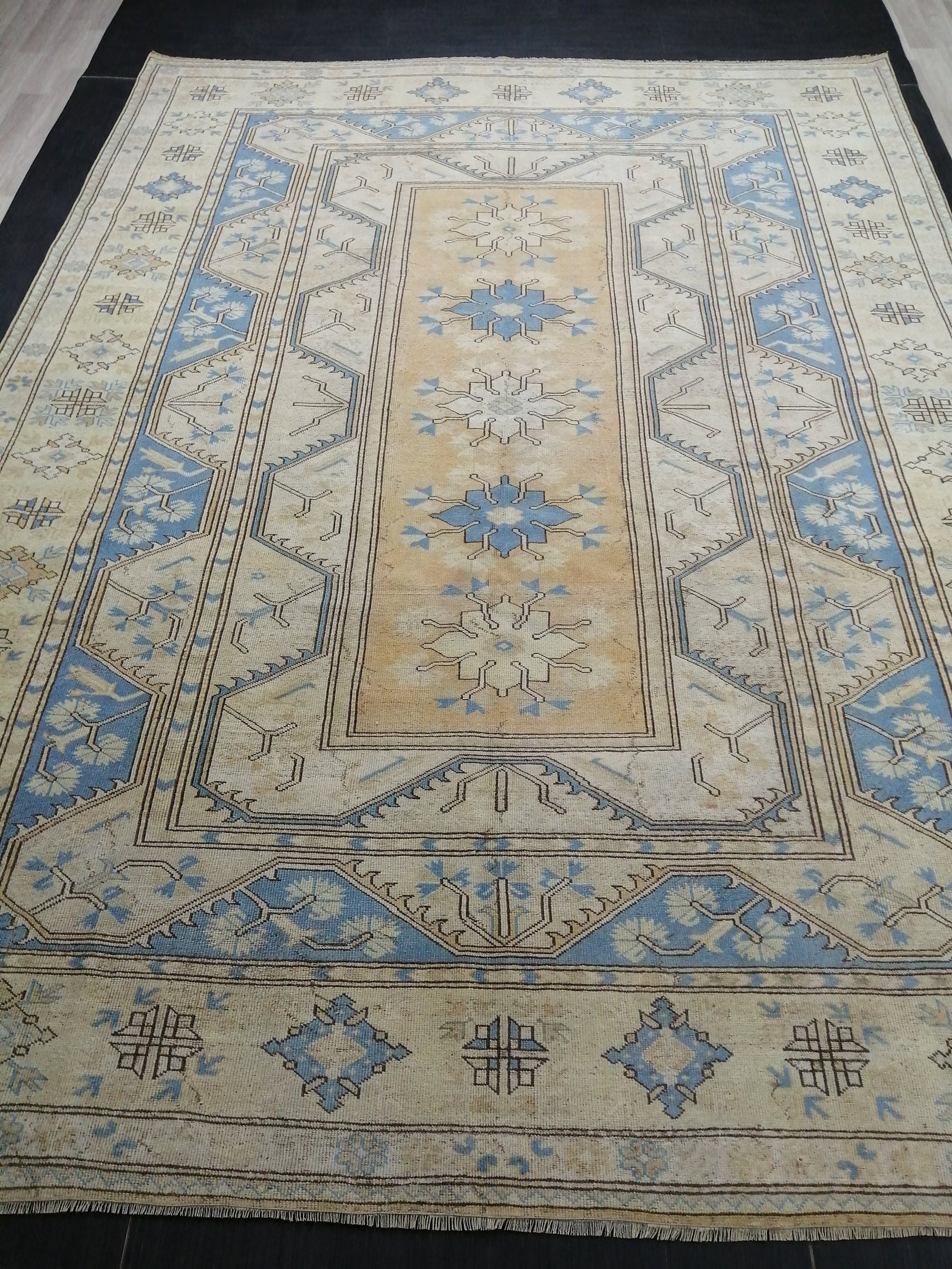 8.7 x 11.8 Muted Wool OUSHAK RUG TURKISH Persian Rug Vintage Oriental Rug Vintage Hand Made Rug Wool Oushak Rug Light Blue Rug 8x12 rug