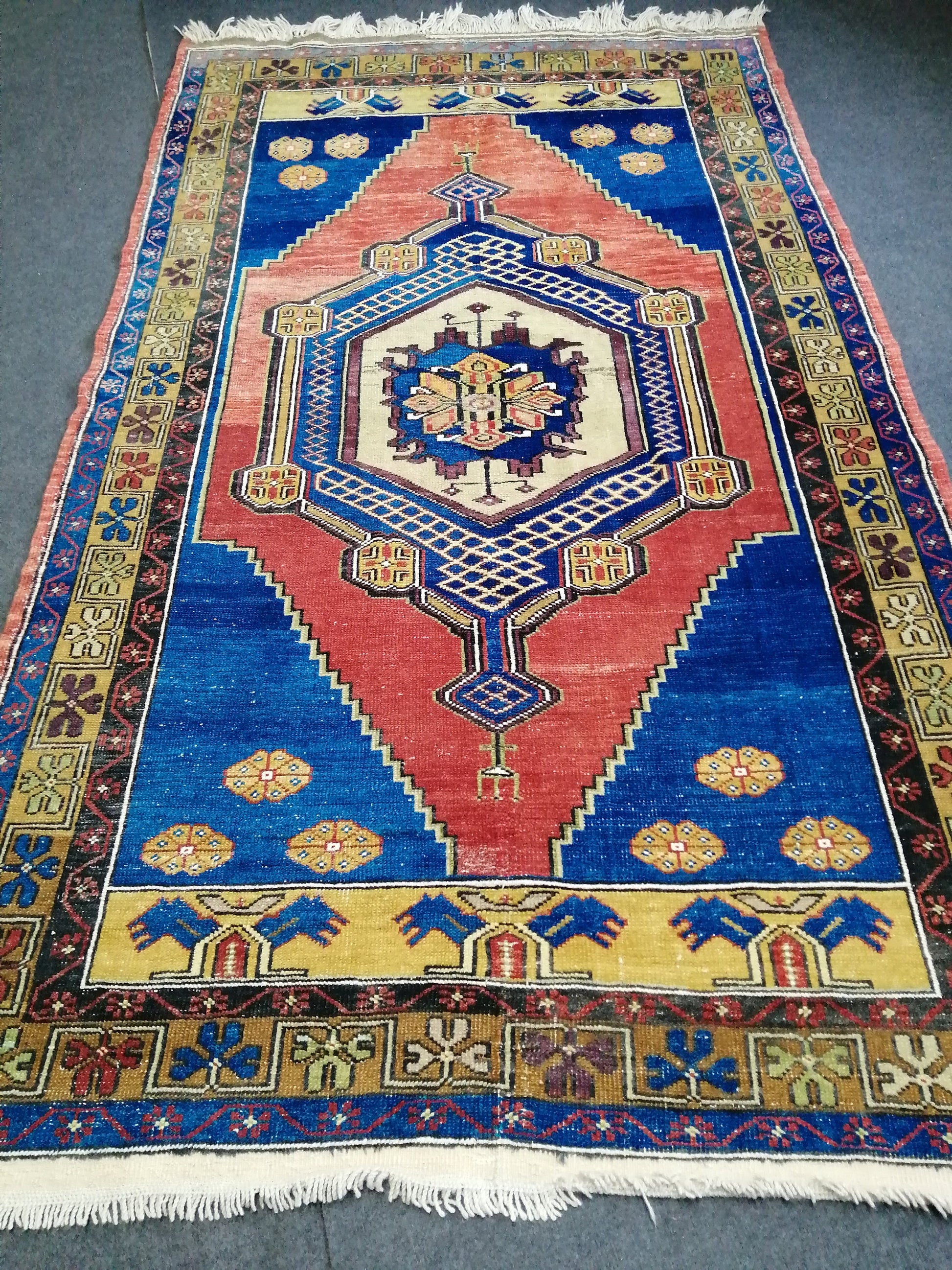 *A vintage handmade Turkish rug made of hand spun wool and double knotted on sturdy foundation,