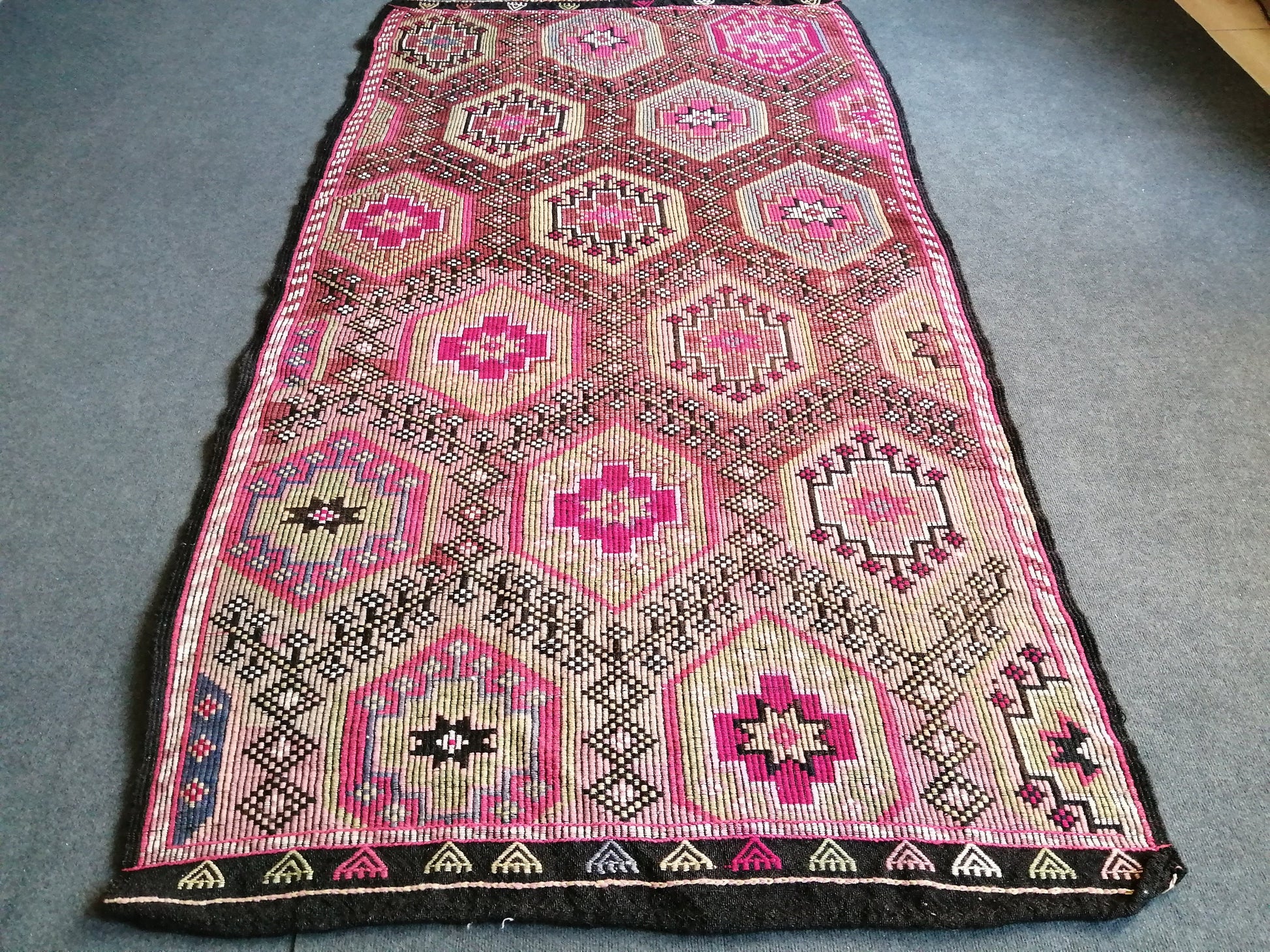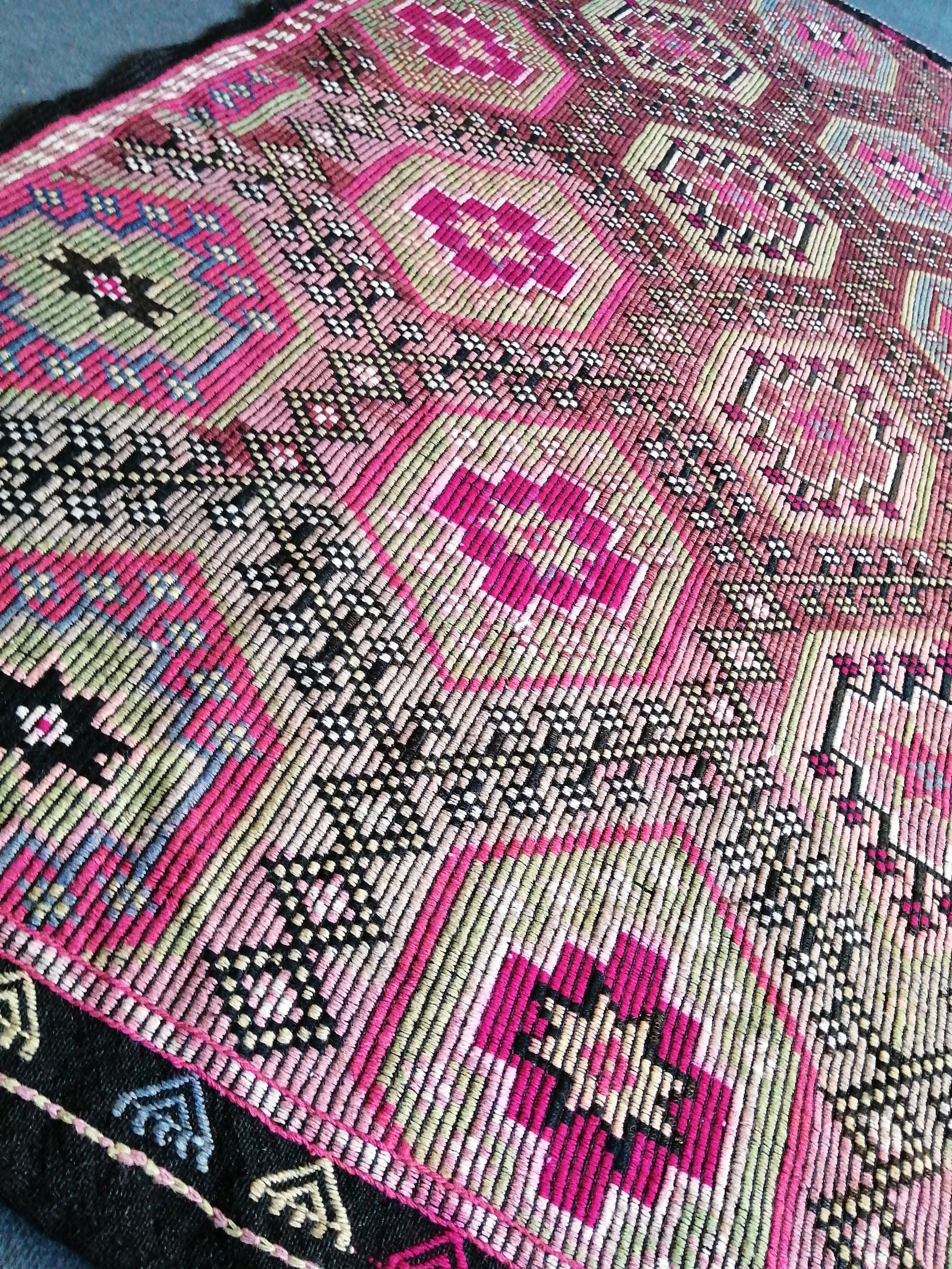 FLATWOVEN KILIM WITH WOOL EMBROIDERY ON TOP OF GOAT HAIR BASE