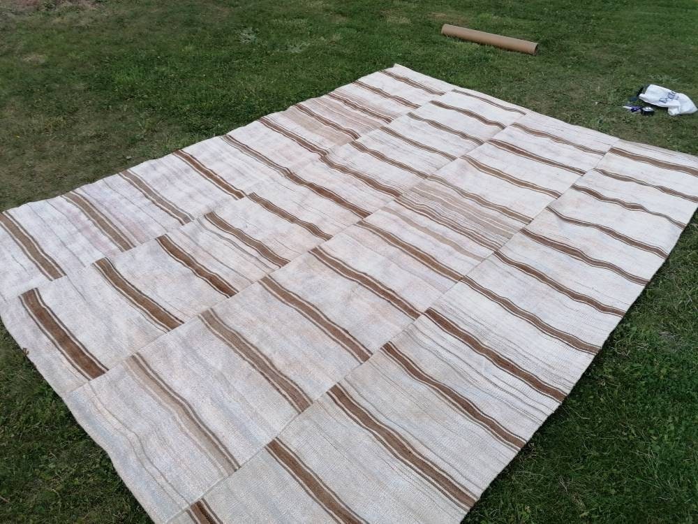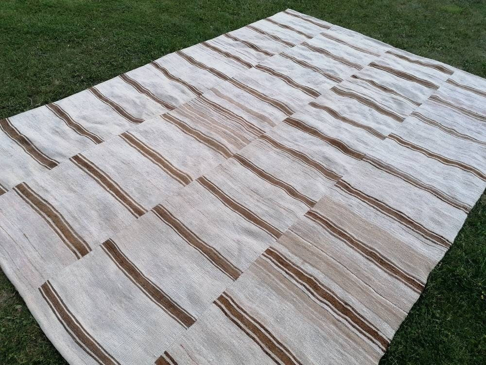 8x12 feet flatweave wool kilim, neutral color stripe rug handmade turkish kilim rug, oversize oushak brown kilims, hallway kilims
