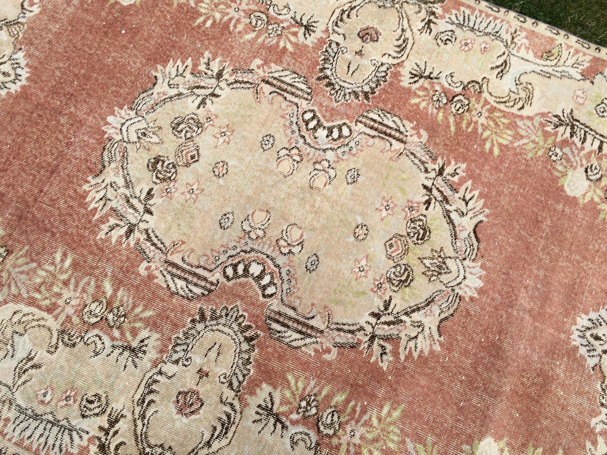 9.4x6 Vintage Rugs, Vintage Turkish Rug, Vintage Large Area Rug Soft Orange Vintage Rug Hand Made Oushak Rug Earth Tones Rug Rustic Rug