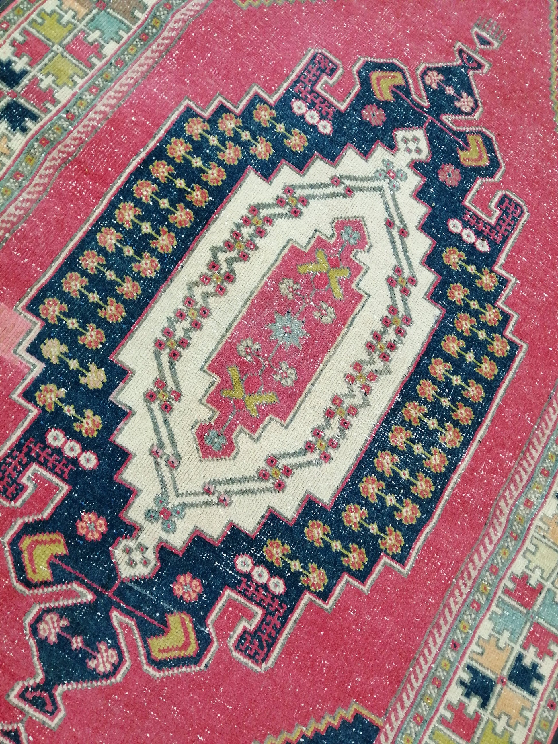 *A vintage handmade Turkish rug made of hand spun wool and double knotted on sturdy foundation,