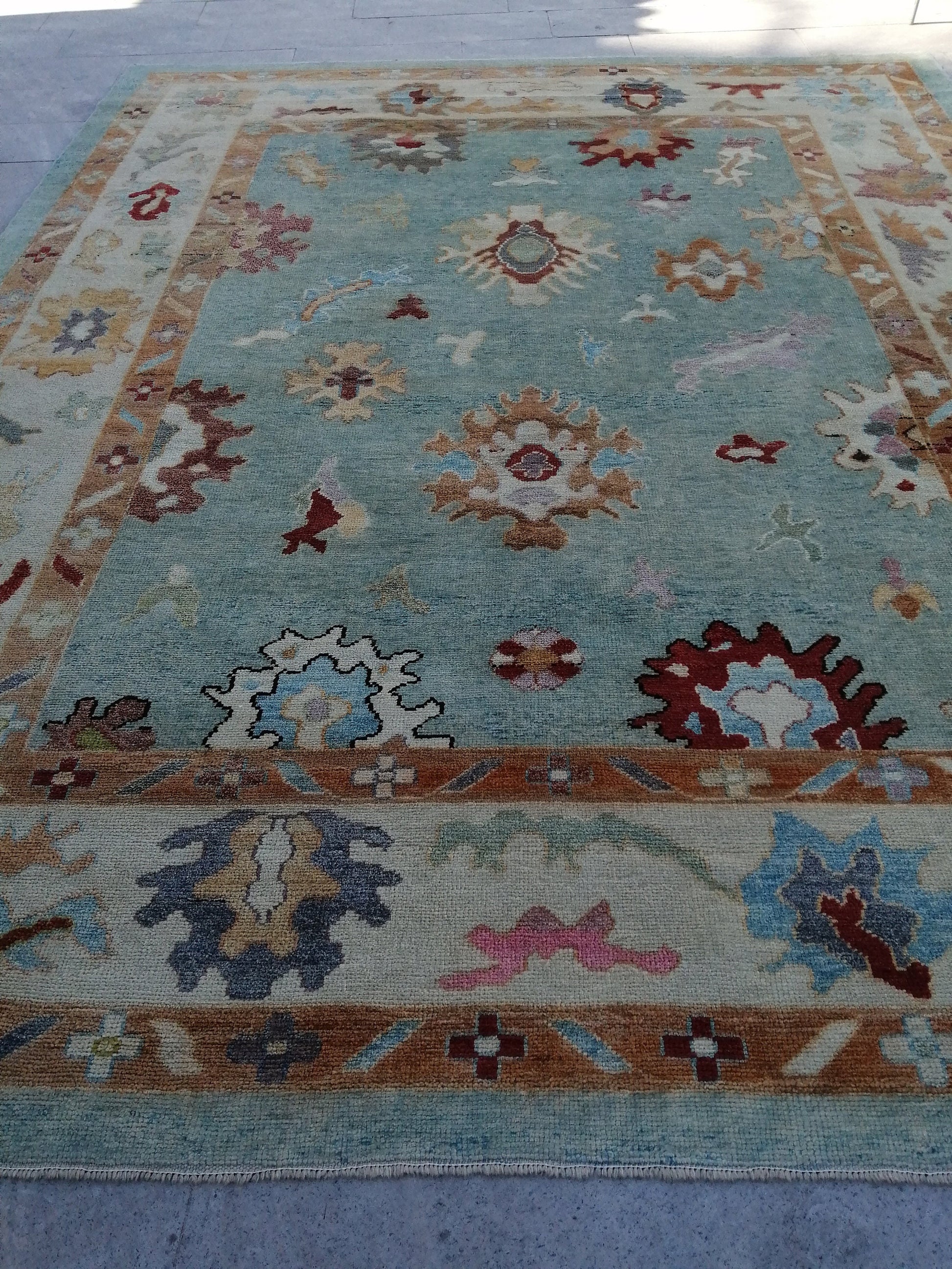 9.6 x 11.9 Blue OUSHAK RUG, TURKISH Oushak Rug, Vintage Oushak Rug, Blue Wool Oushak Rug Hand Made Rugs, Made In Turkey Oriental 10x12 rug