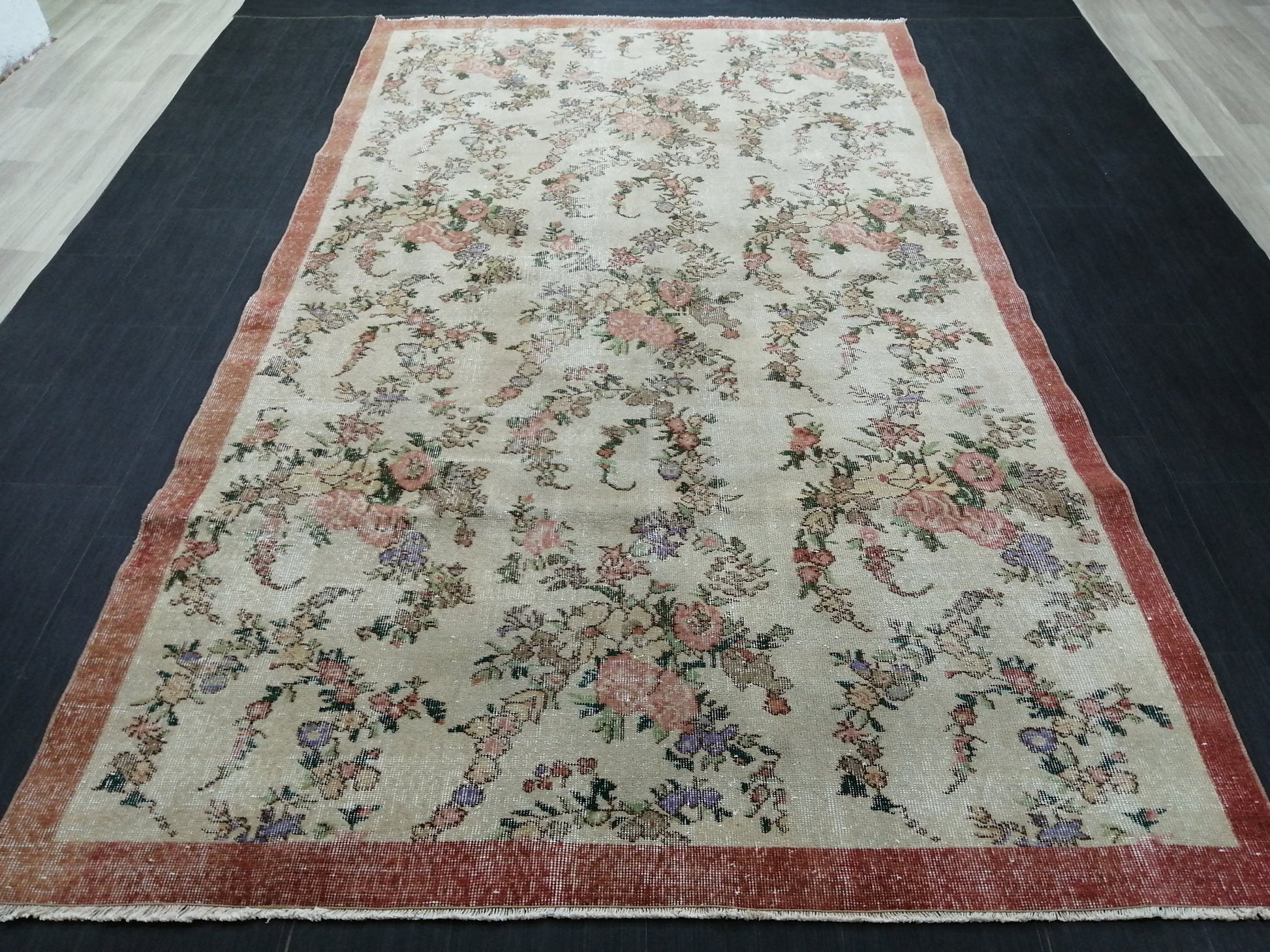9.7x5.7 Floral Oushak Runner Rug Turkish Runner Rug Vintage Runner Rug Hallway Runner Rug Kitchen Runner Rug Wool Runner Rug Wool Oushak Rug