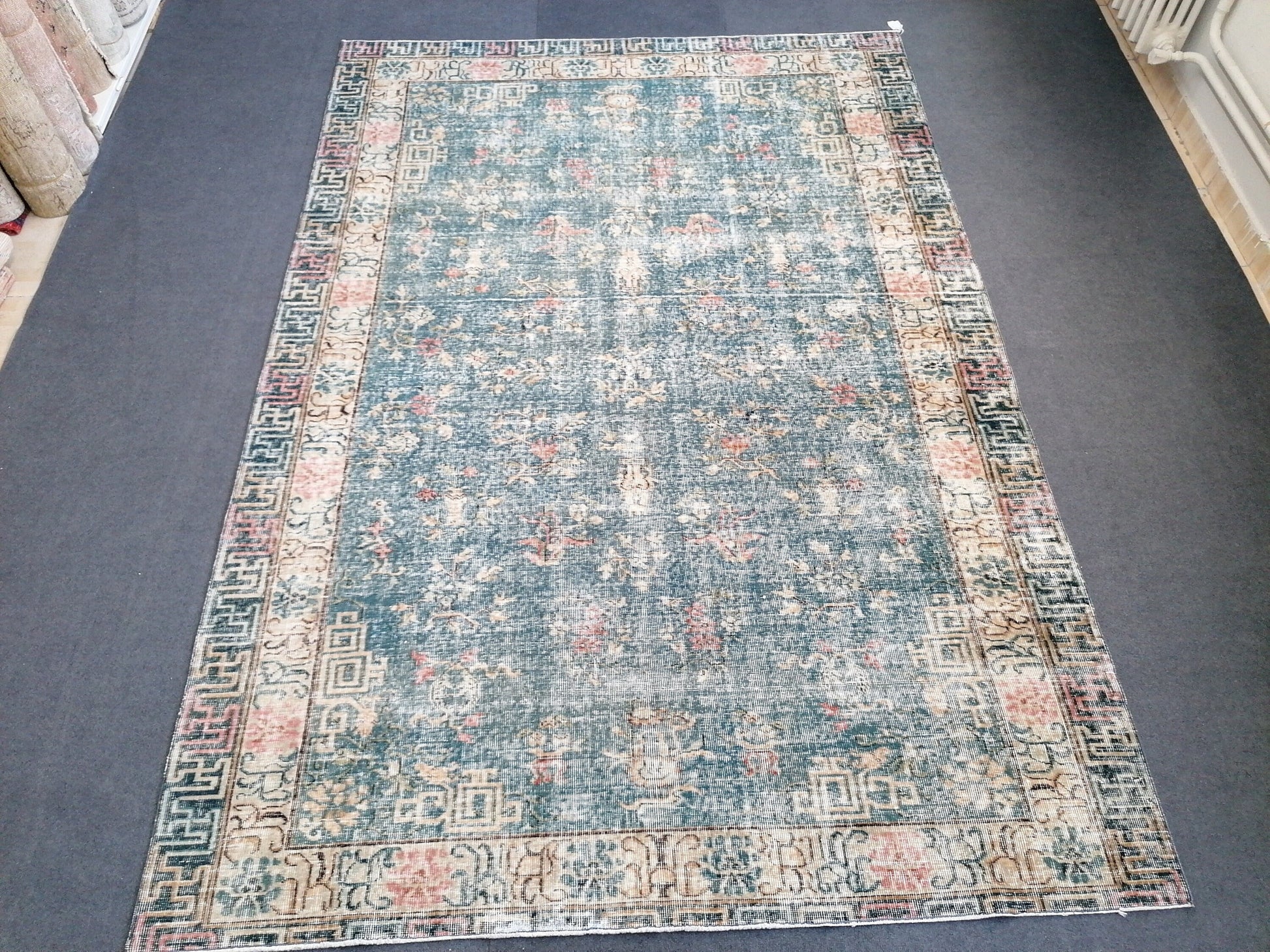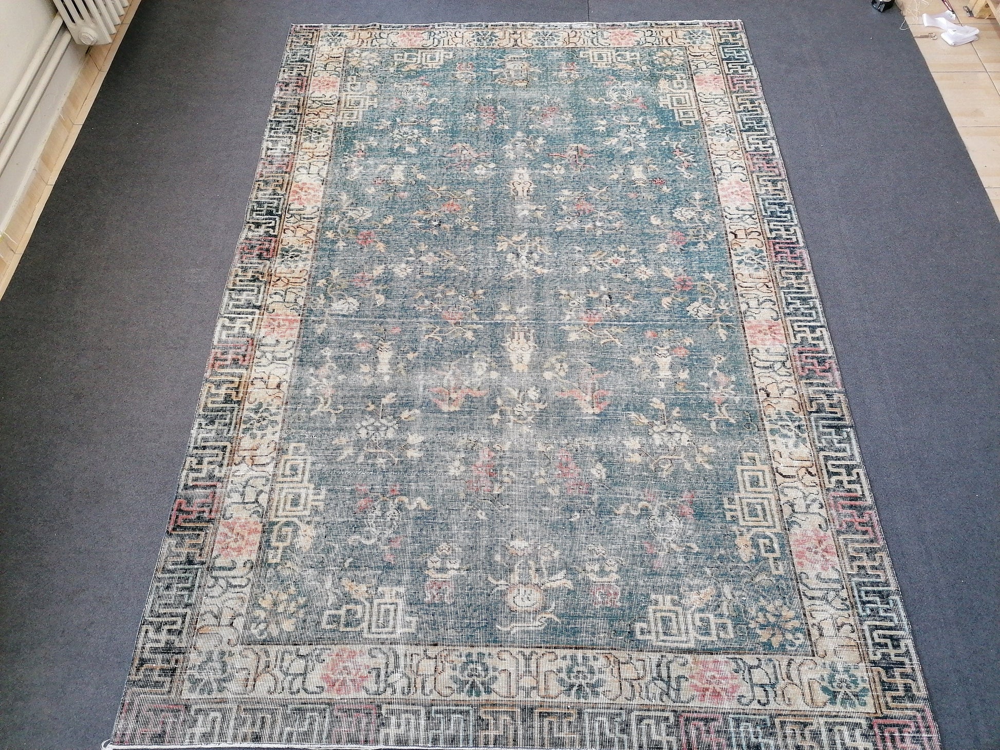 9'4x6'5 large oushak rug, blue distressed turkish rug vintage oushak runner rug vintage runner rug wool oushak vintsge hand made rugs