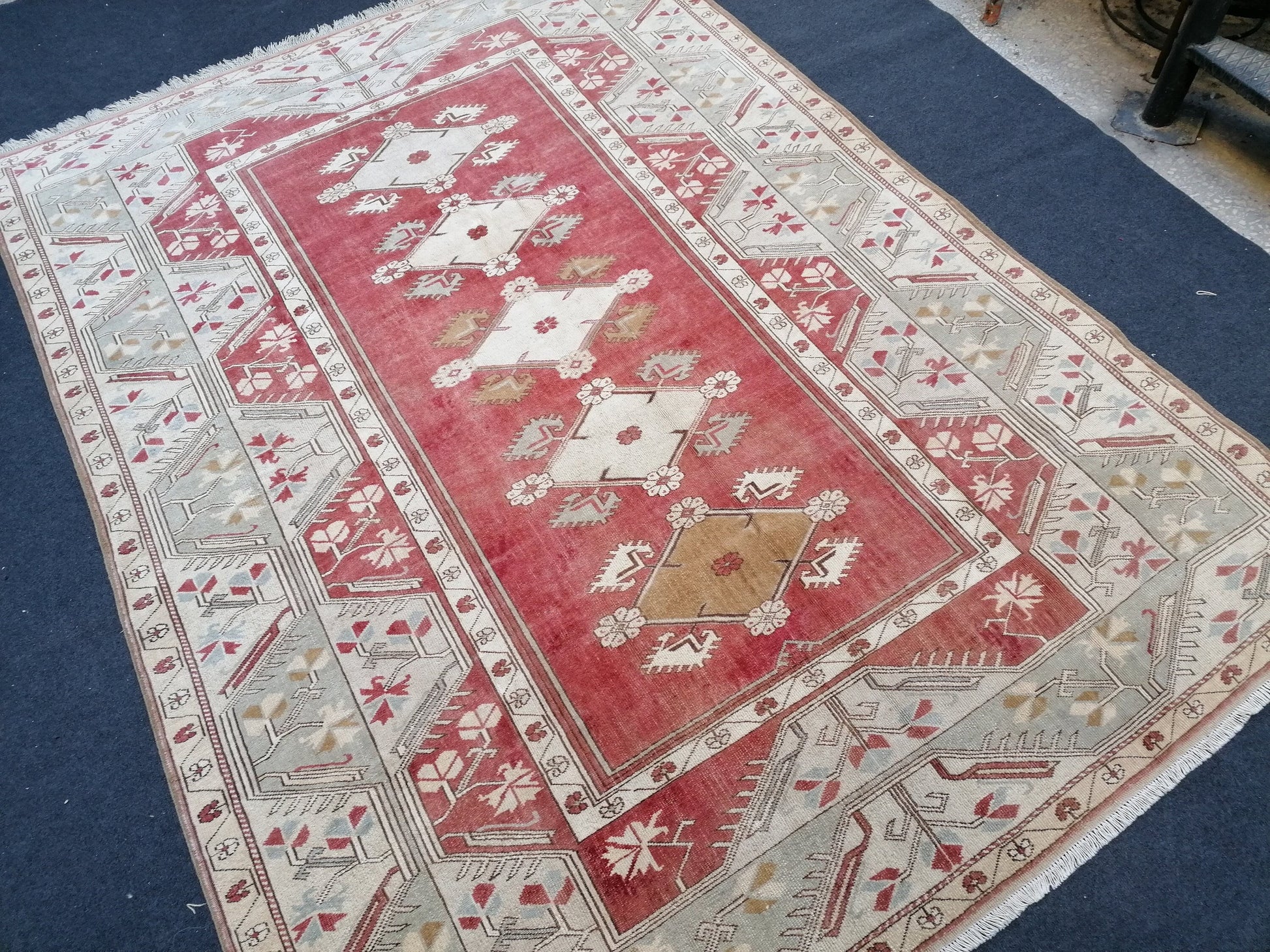9'5x7'11 oushak turkish rug, vintage turkish rug,oushak vintage rug,vintage rug,kitchen rug,vintage anatolian rug,unique hand made bohemian