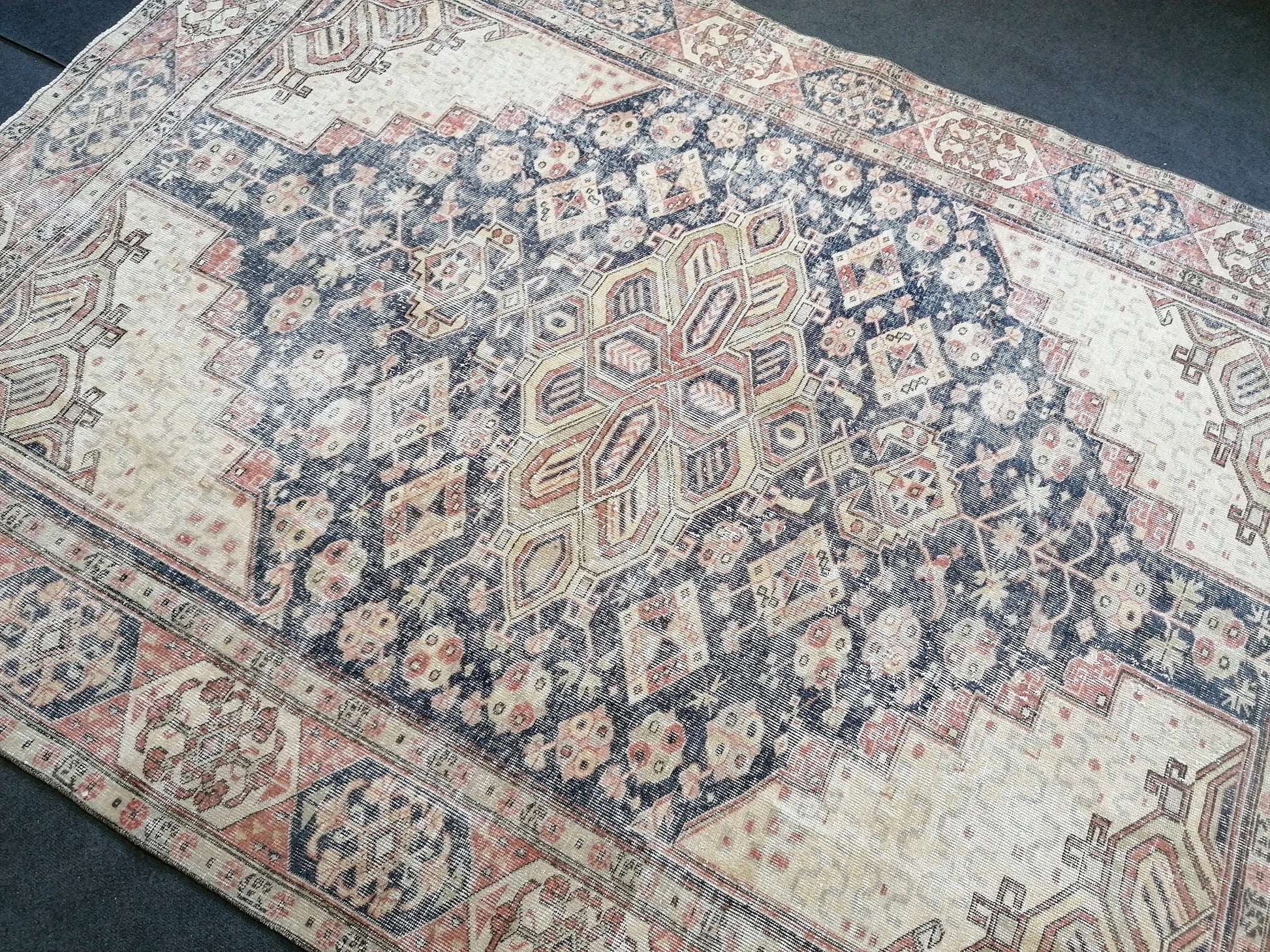 9'7x7 blue oushak rug,vintage runner rug wool hand made rugs vintage blue rug