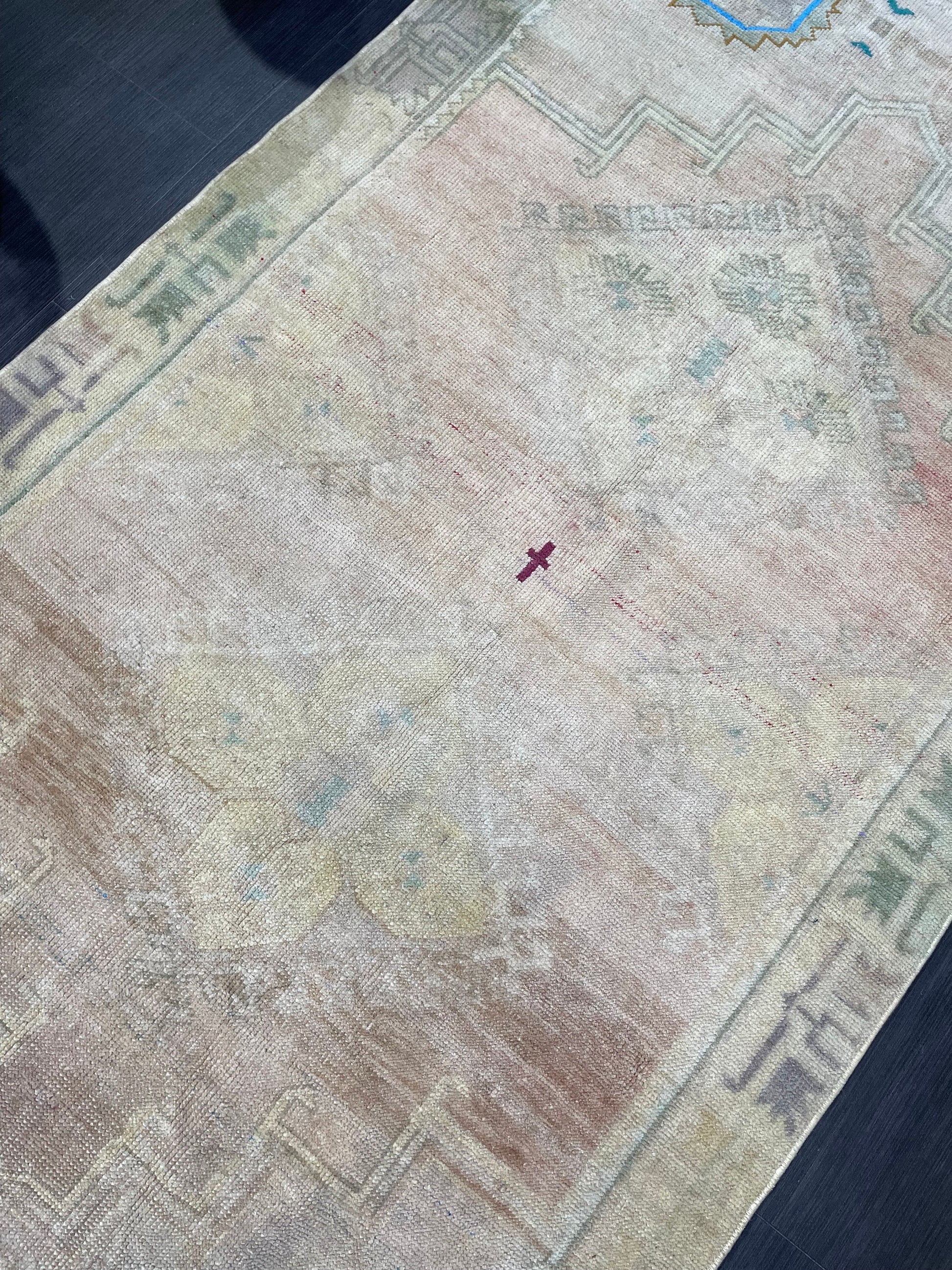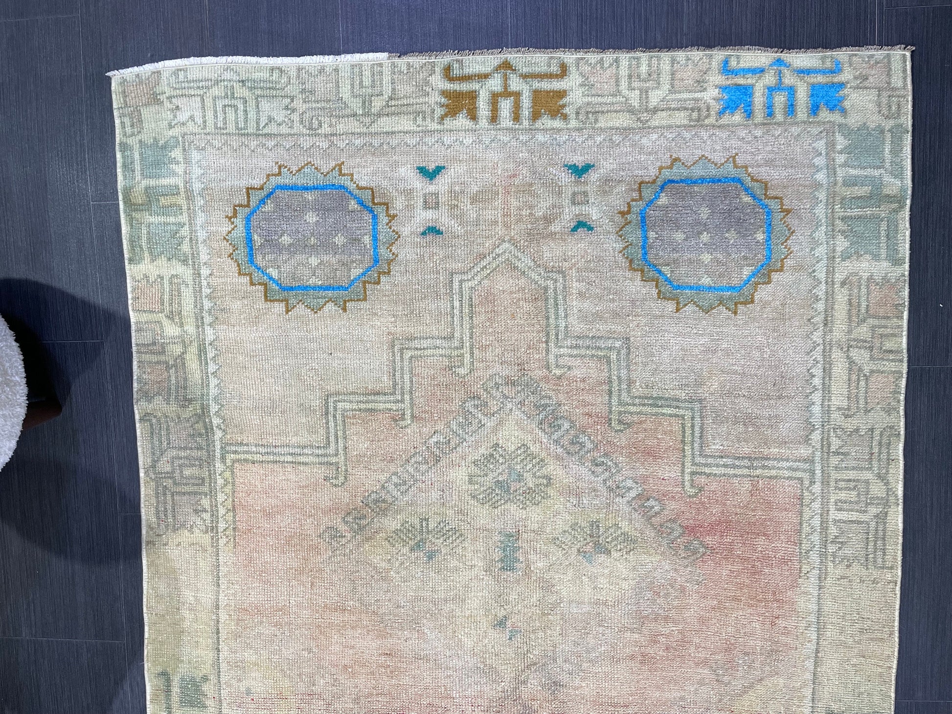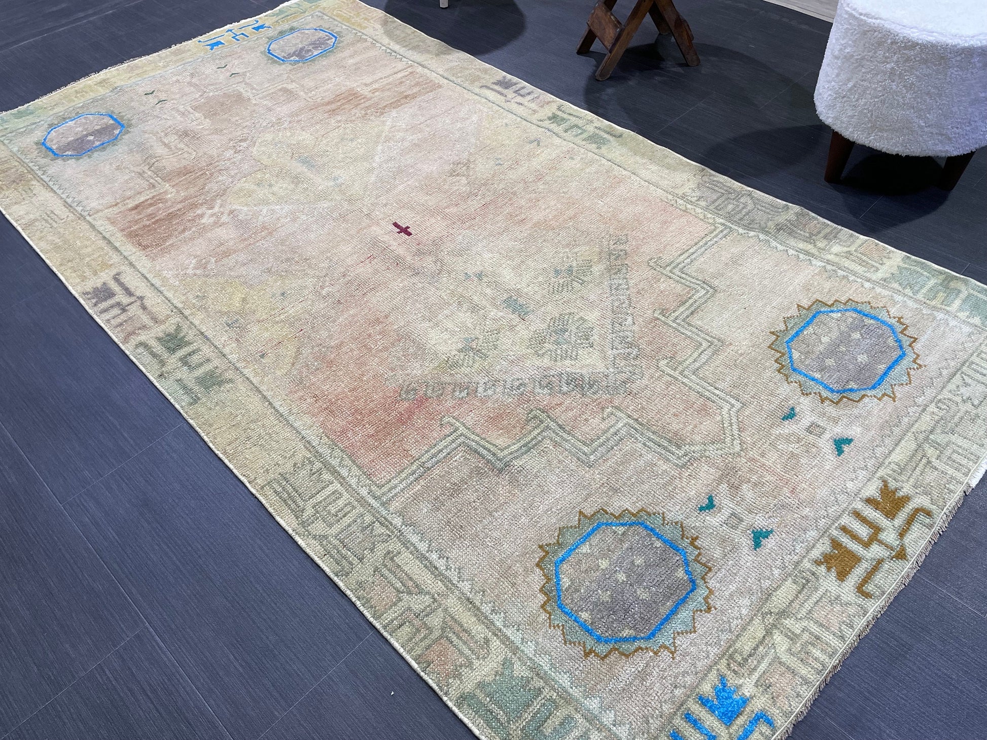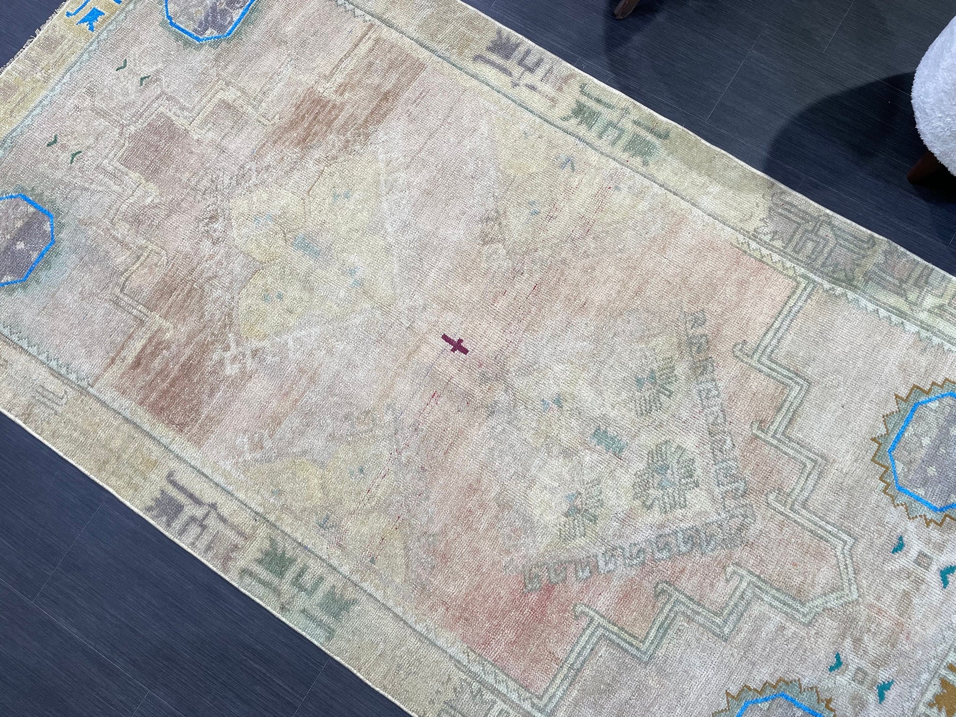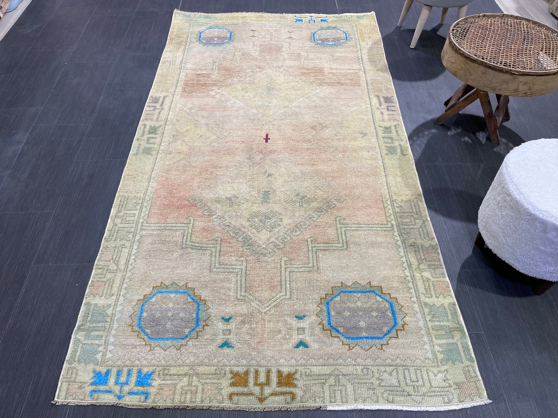 Anatolian Vintage Rug, TURKISH Rug, Vintage 3.10 x 7.3 Wool Rug, Oushak Rug, Hand Knotted Rug, 100% Wool Rug, Handmade Rug