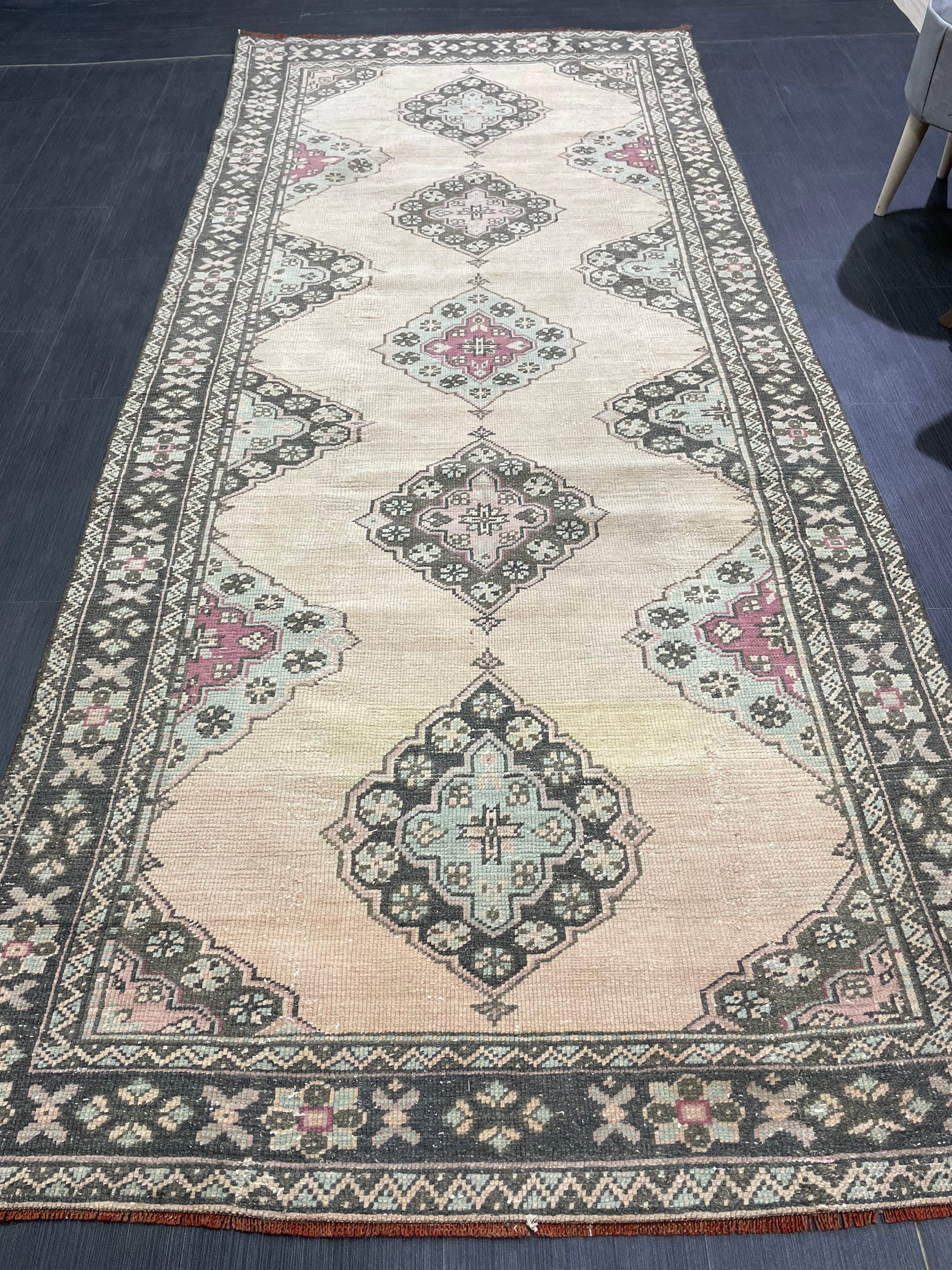 Antique Handmade Runner RUG 4.2 x 10 TURKISH Oushak Rug Vintage Runner Rug Vintage Runner Rug Wool Oushak Rug Handmade Rug Hand Knotted Rug