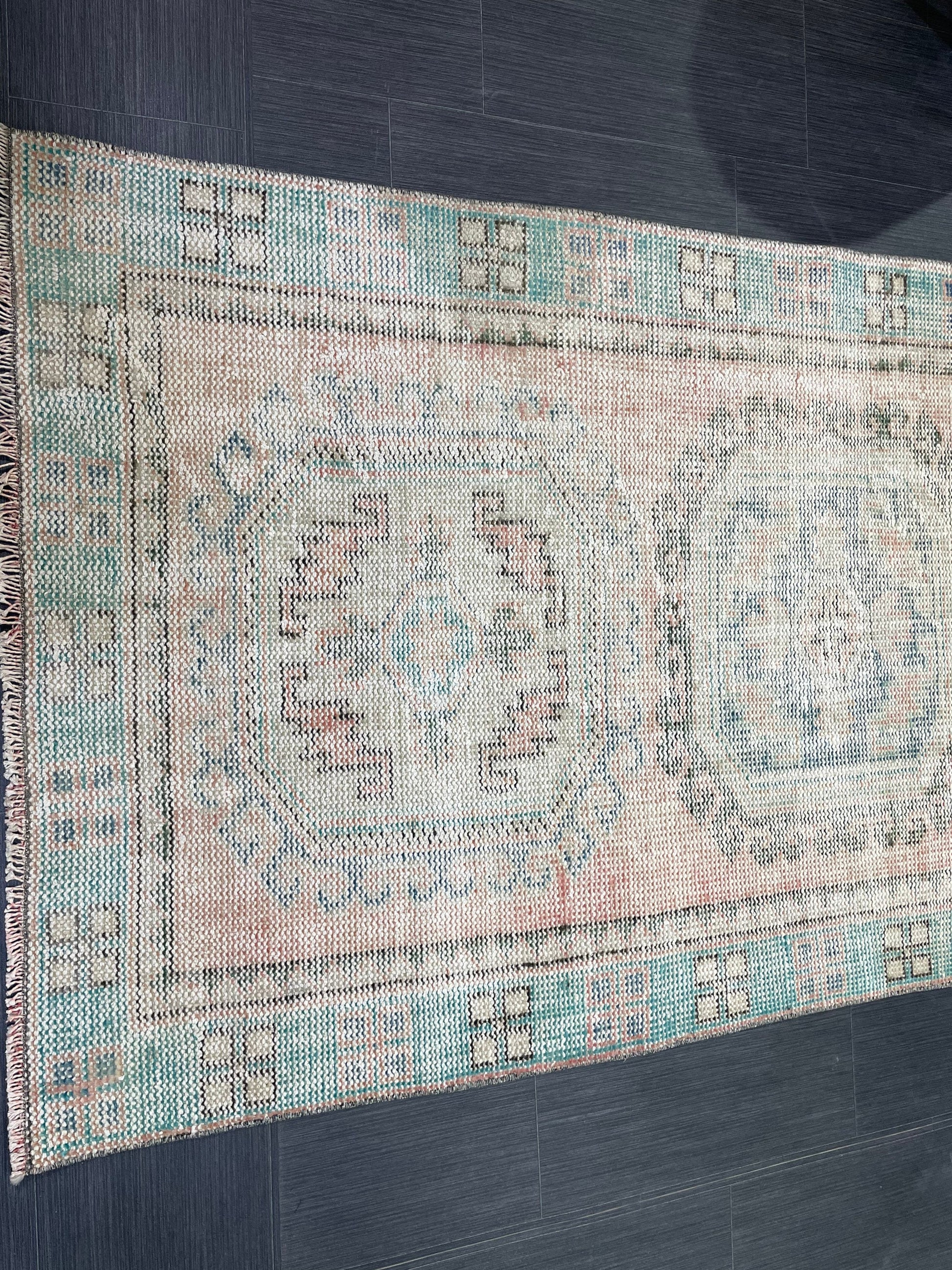 *A vintage handmade Turkish rug made of hand spun wool and double knotted on sturdy foundation,