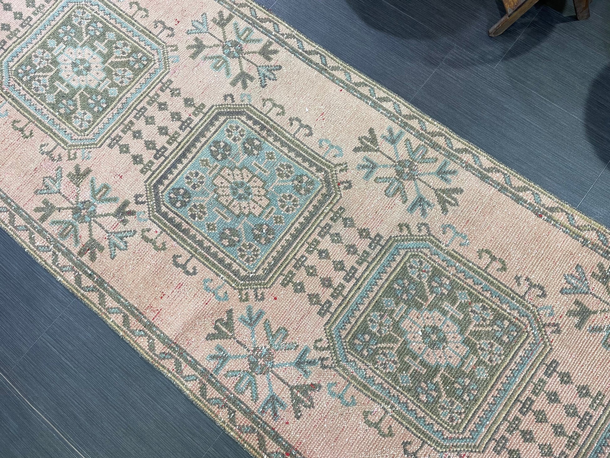 Antique Oushak Runner Rug, Vintage 3 x 11.3 Runner Rug, Hallway Runner Rug, Distressed Runner Rug, Wool Runner Rug, Handmade Runner