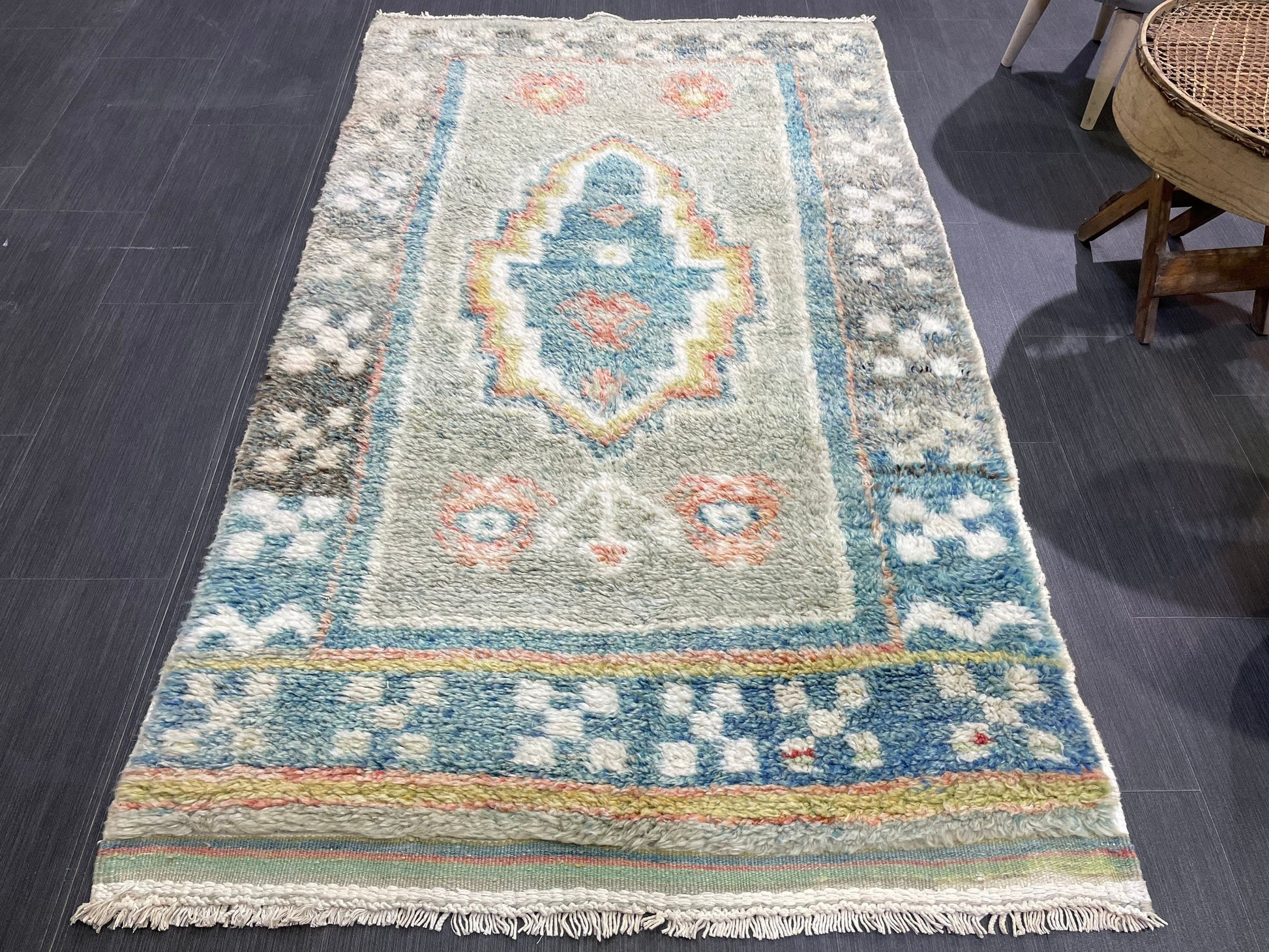 *A vintage handmade Turkish rug made of hand spun wool and double knotted on sturdy foundation,