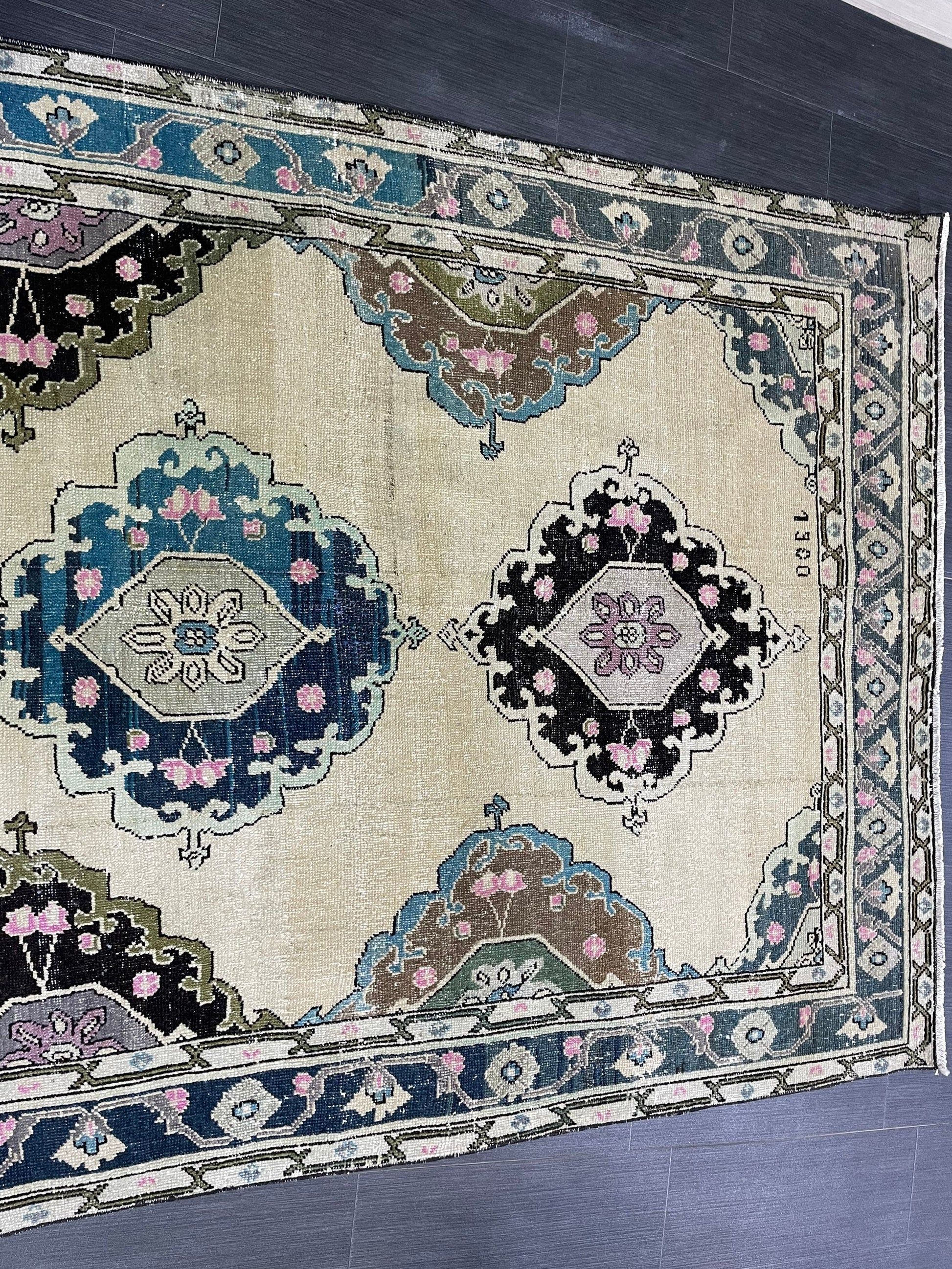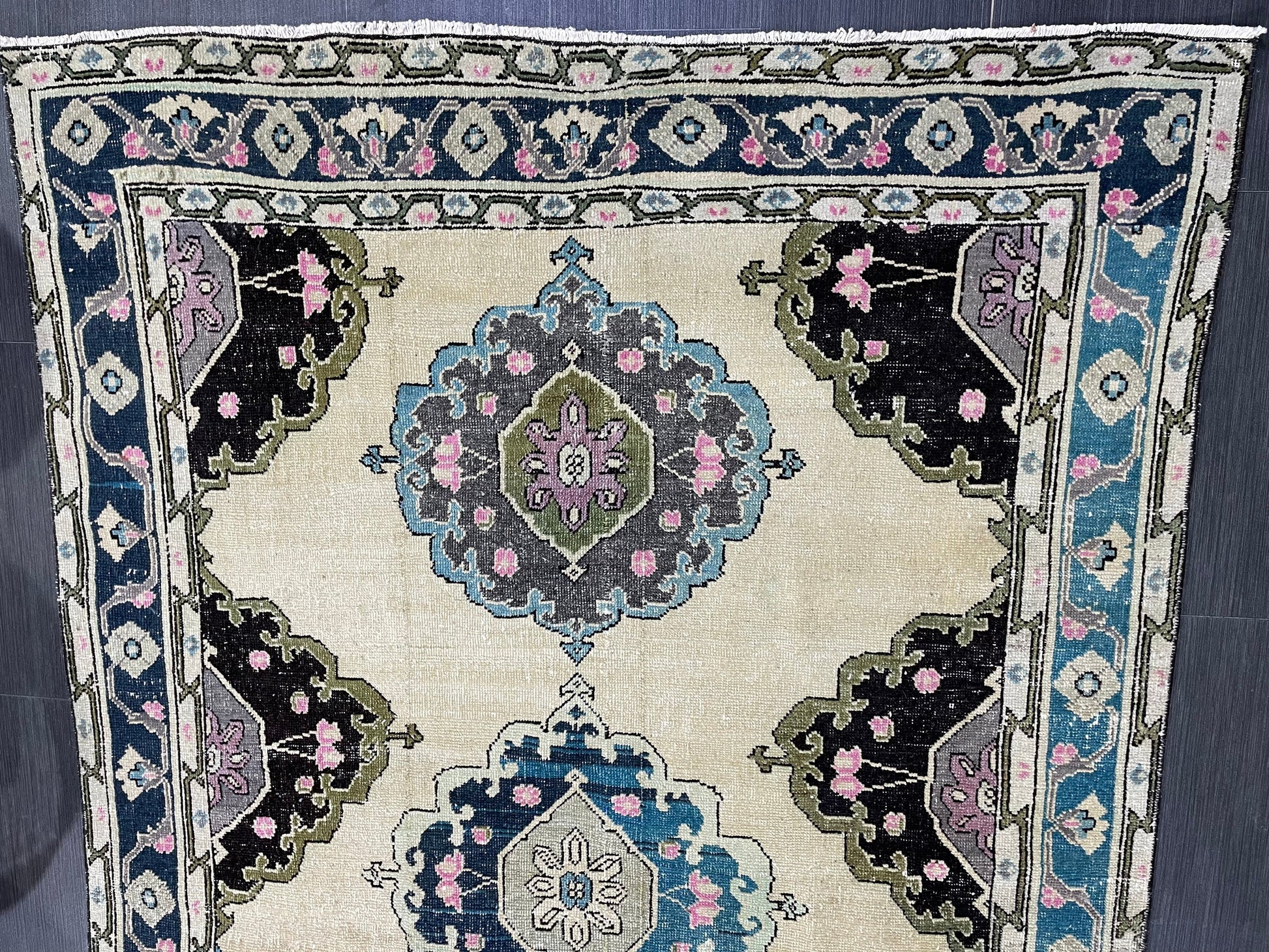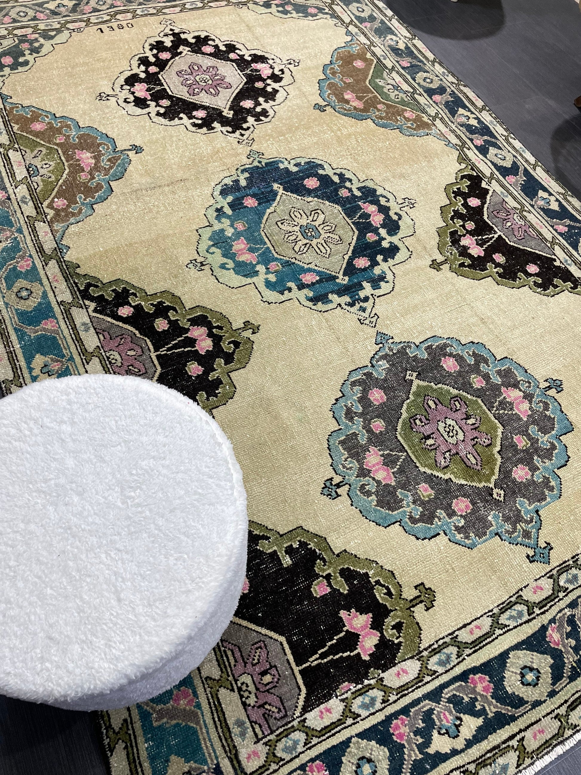 *A vintage handmade Turkish rug made of hand spun wool and double knotted on sturdy cotton foundation,