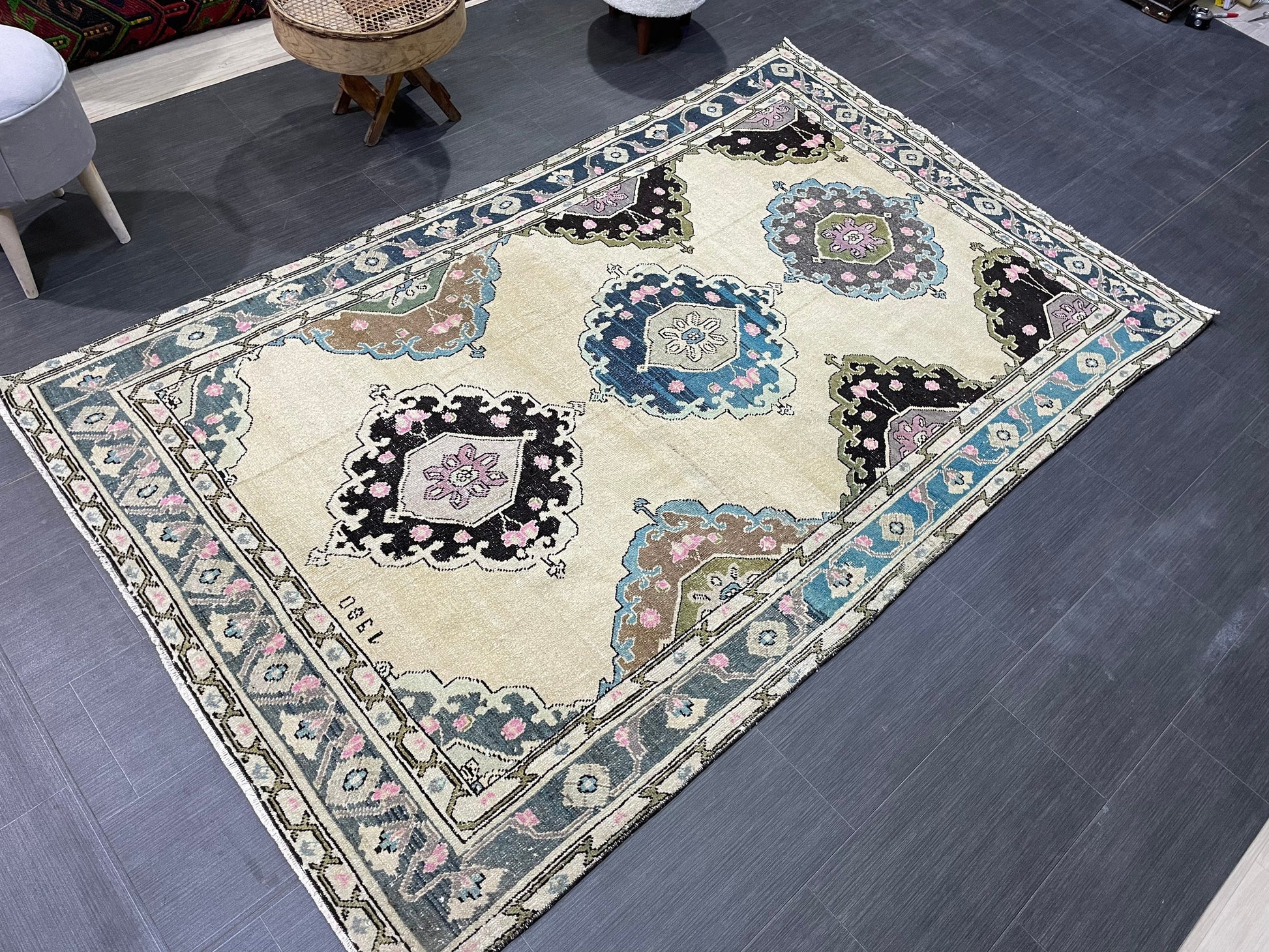 Antique Rug, TURKISH RUG, VINTAGE Rug, Living Room4.9 x 7.9 Rug, Oushak Rug, Handmade Rug, Earth Tones rug, Persian Rug, farmhouse rug