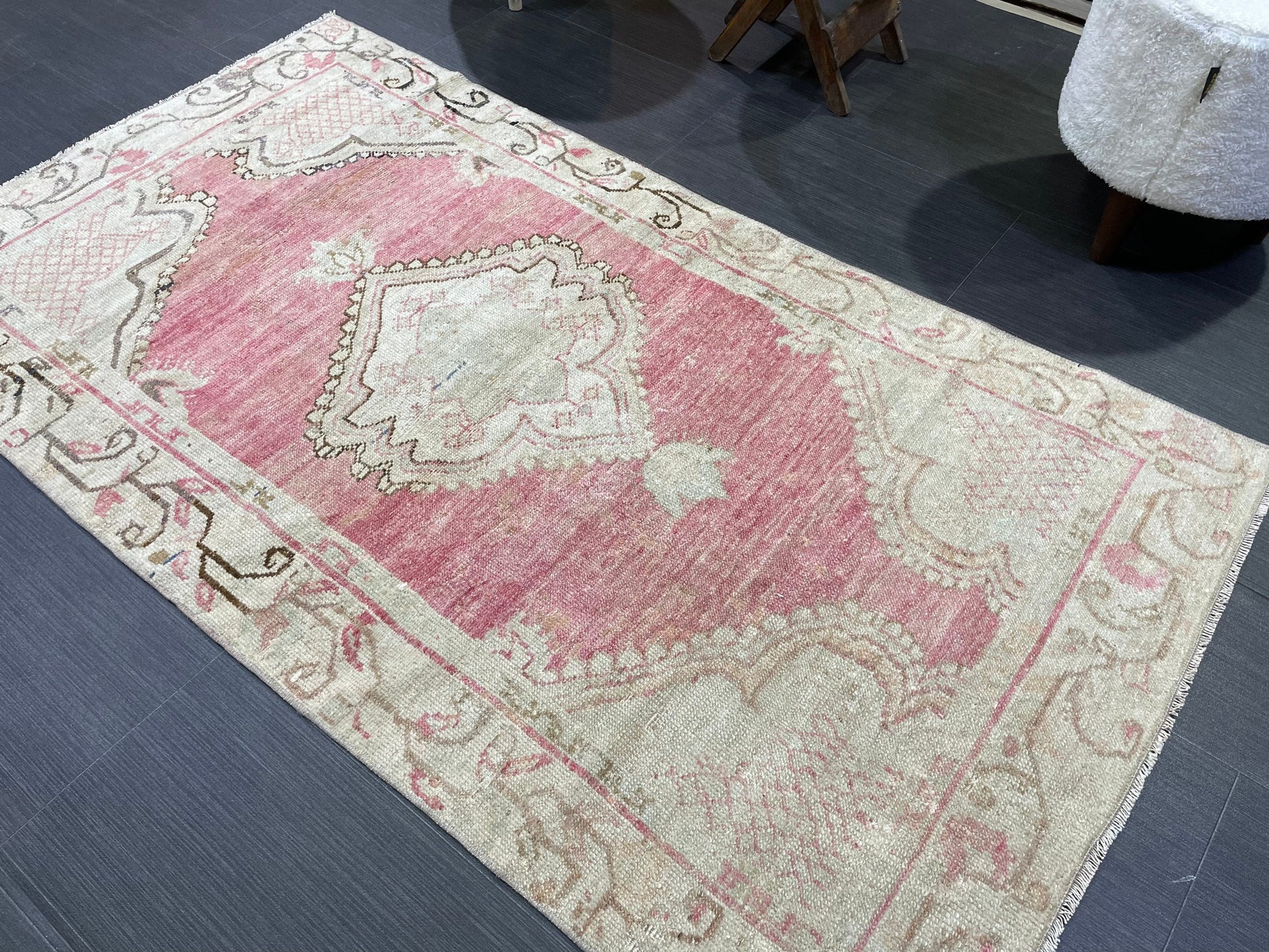Antique Rug, Vintage 3 x 5.5 Rug, Turkish Wool Rug, Oushak Rug, Fine Hand Knotted Rug, Persian Rug, Handmade Rug