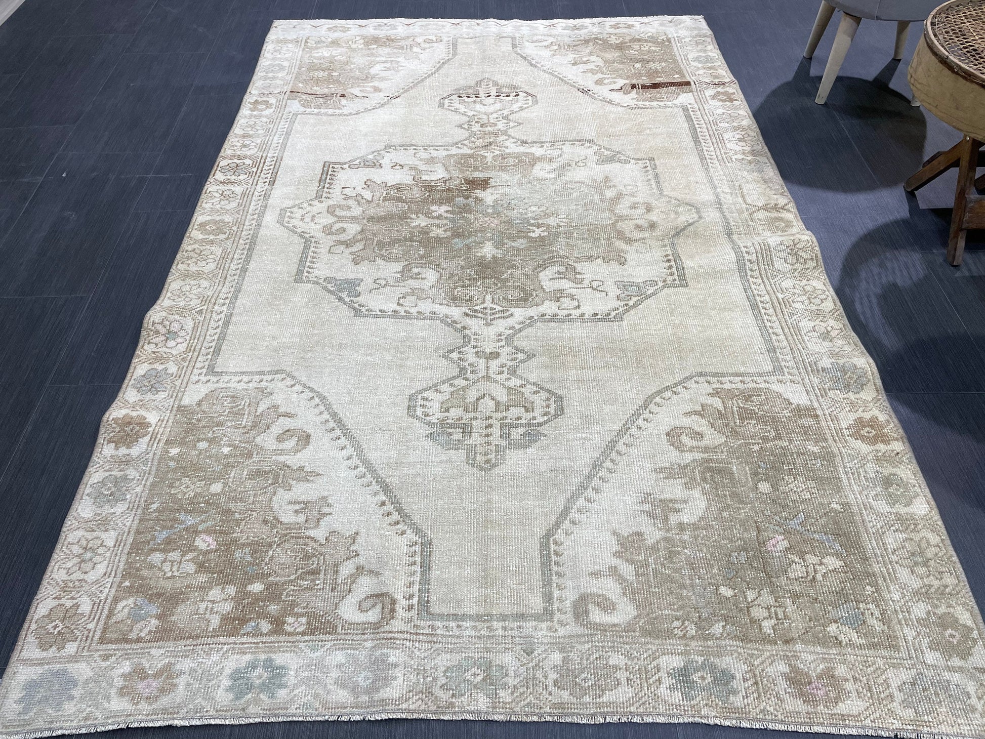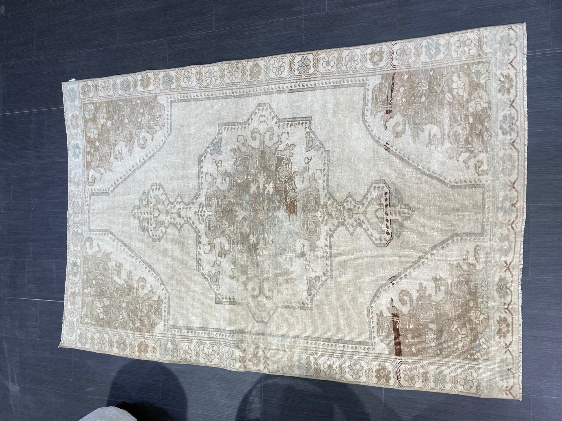 Antique Rug, Vintage 4.4 x 6.7 Rug, Turkish Wool Rug, Oushak Rug, Fine Hand Knotted Rug, Persian Rug, Handmade Rug