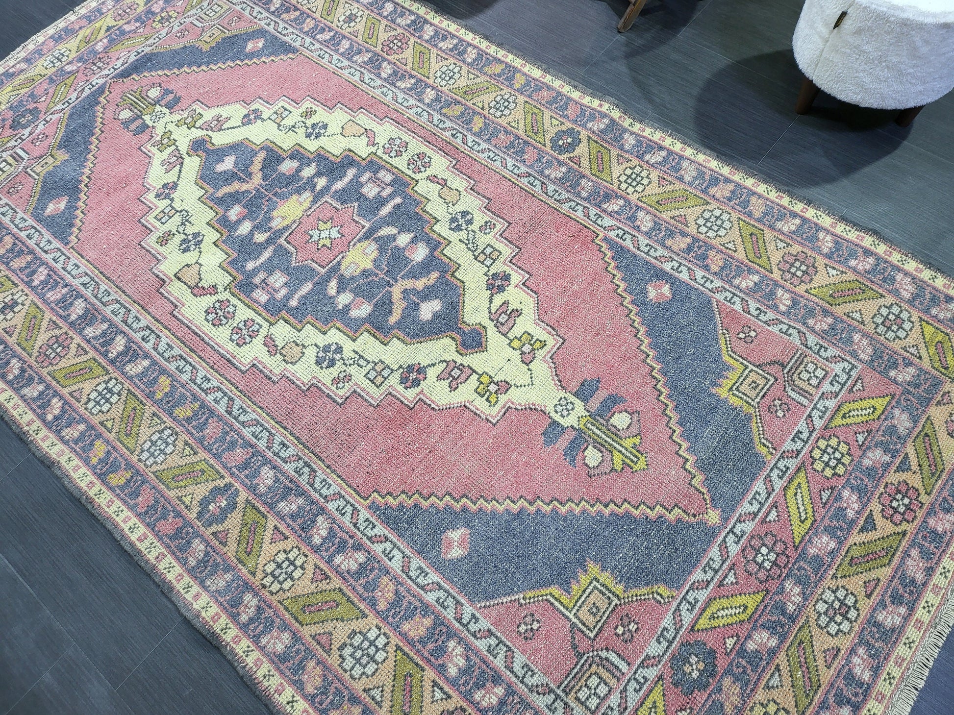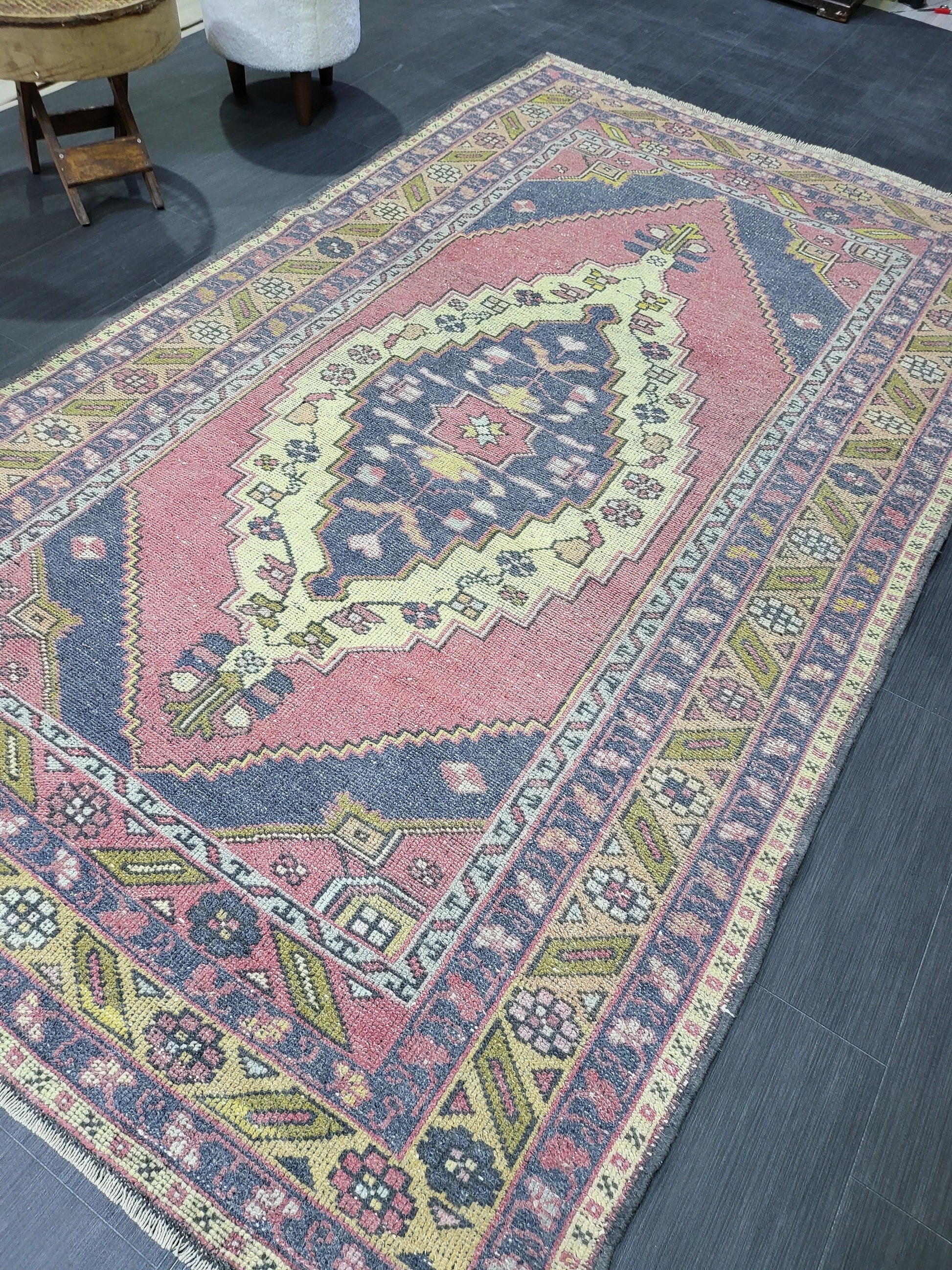 *A vintage handmade Turkish rug made of hand spun wool and double knotted on sturdy foundation,