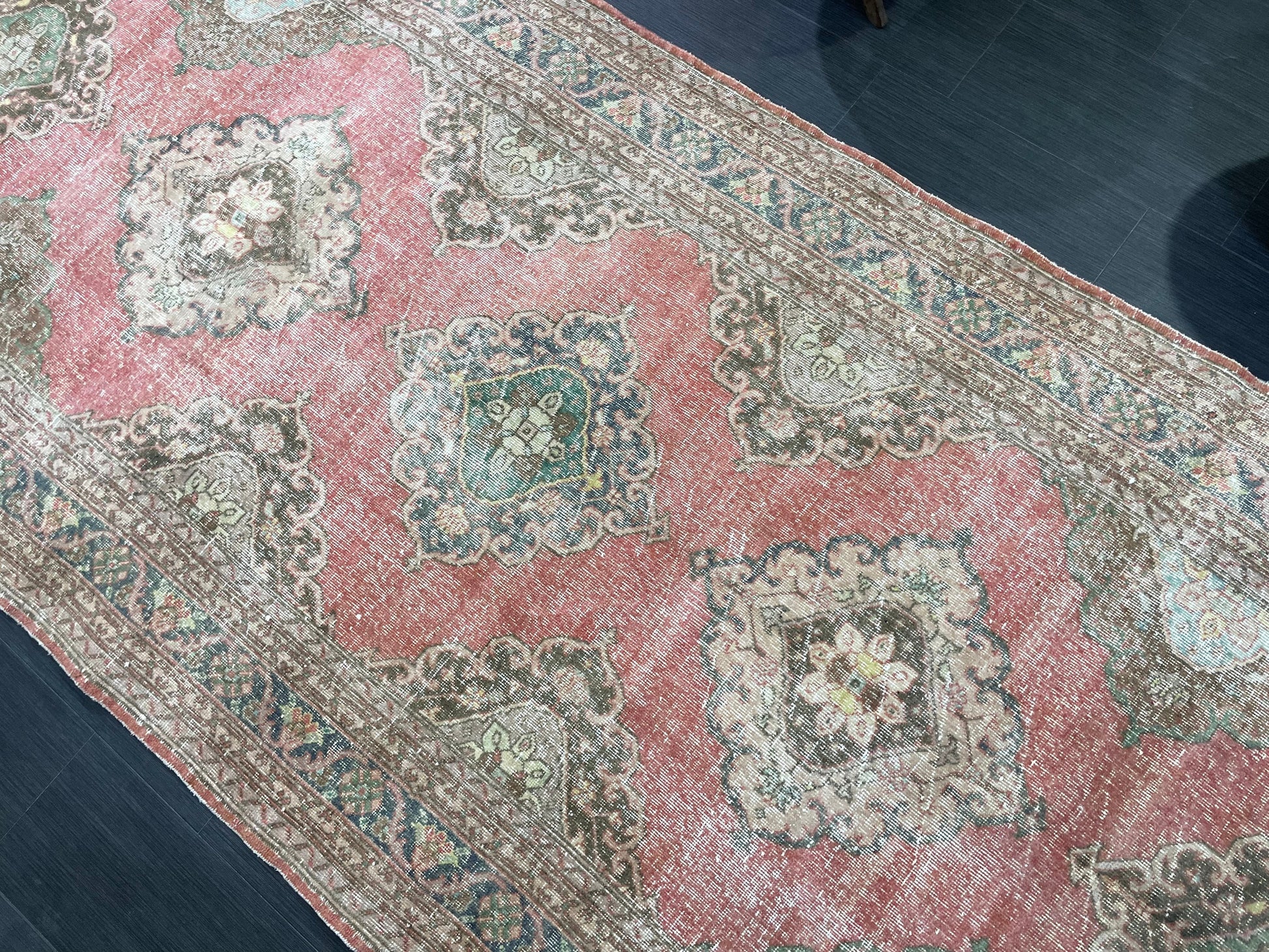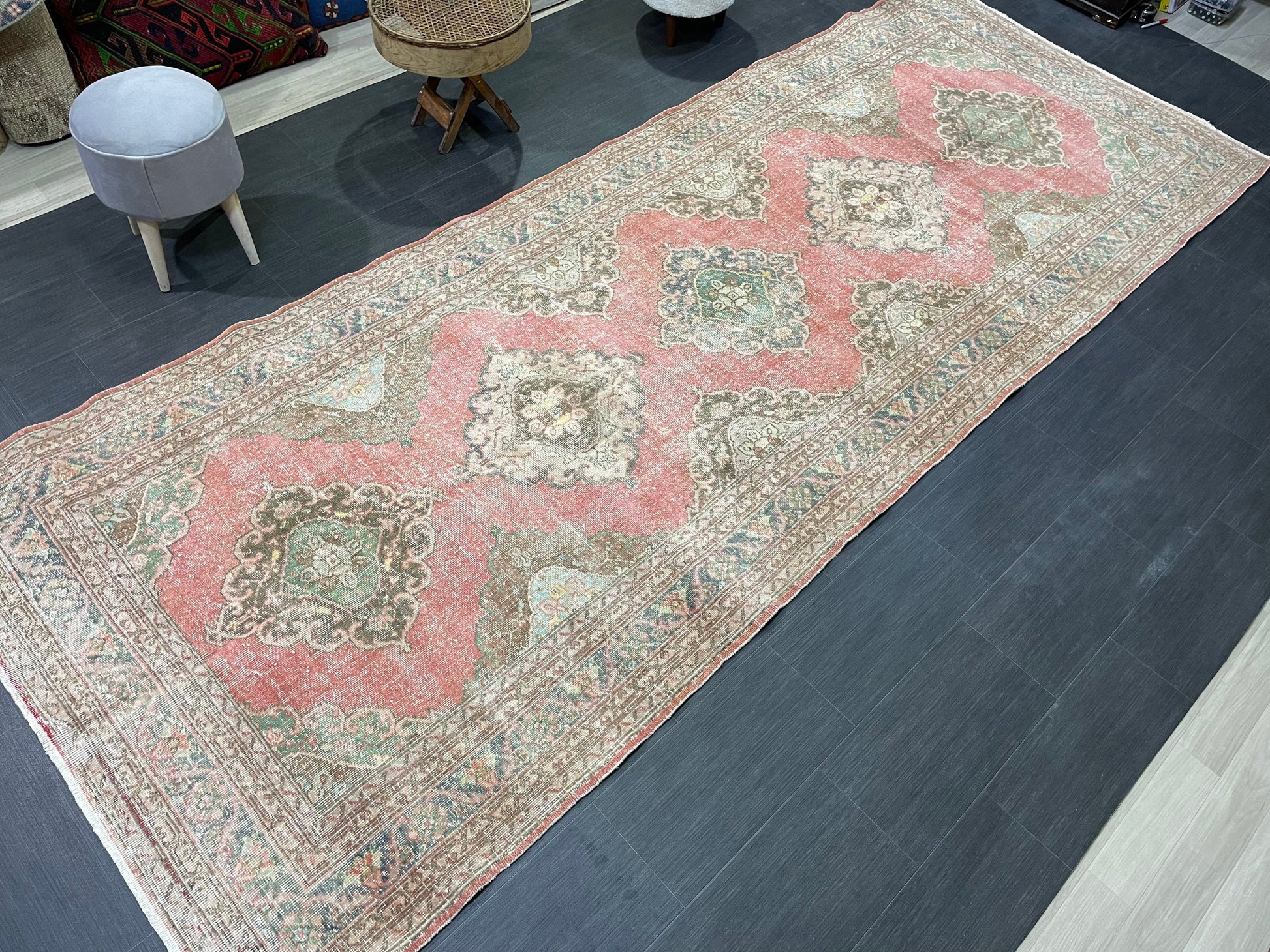 Antique Turkish Runner Rug Muted Distressed 4.9 x 12.6 Runner Rug, Vintage Runner Rug Hallway Runner Rug Kitchen Runner Wool Handmade Runner