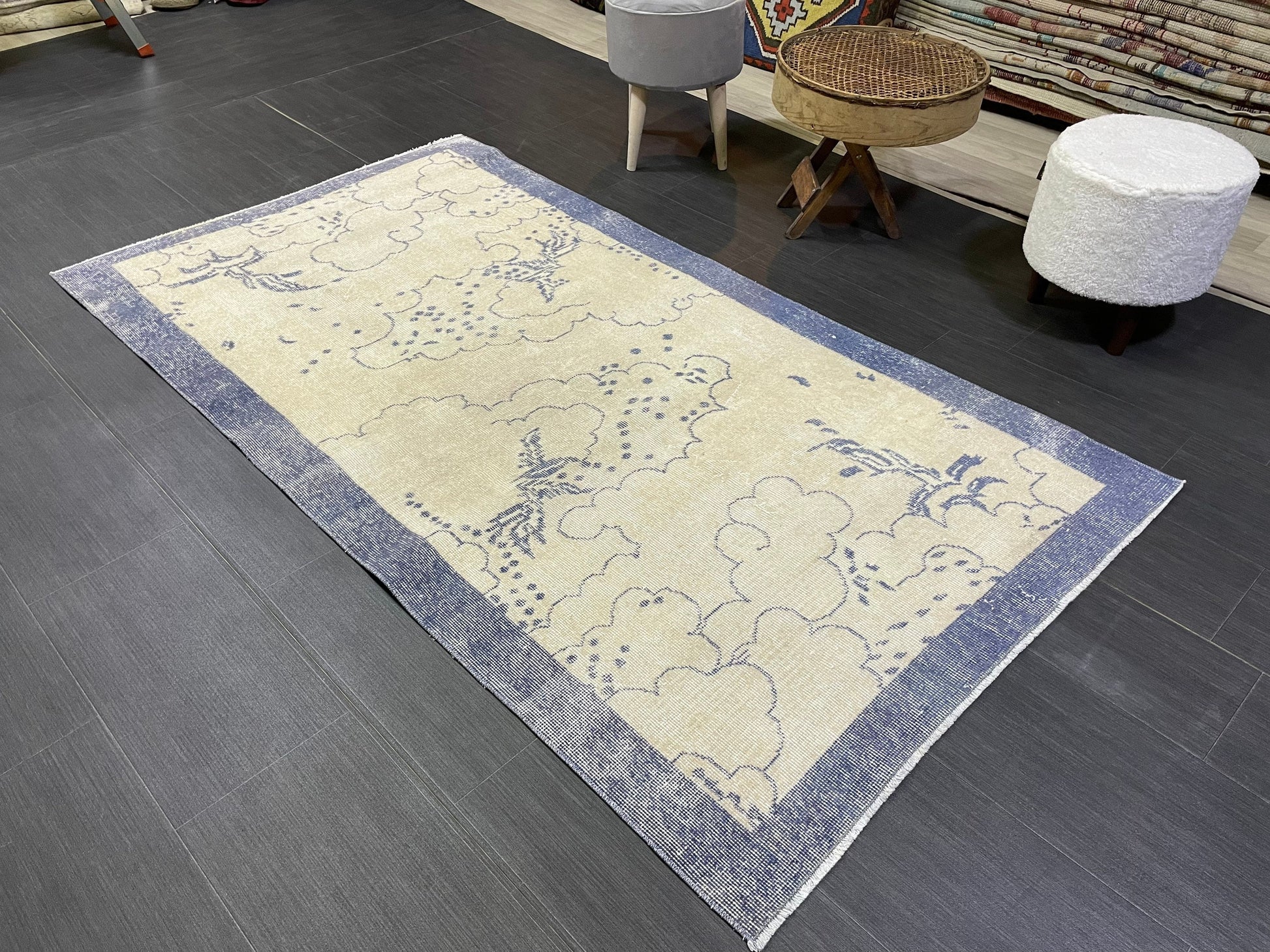 Bathroom Handmade Rug, Vanity 3.8 x 6.9 Rug , Oushak Rug, Wool Oriental Rug, Persian Rug, Vintage Turkish Rug Hand Knotted Wool Rug