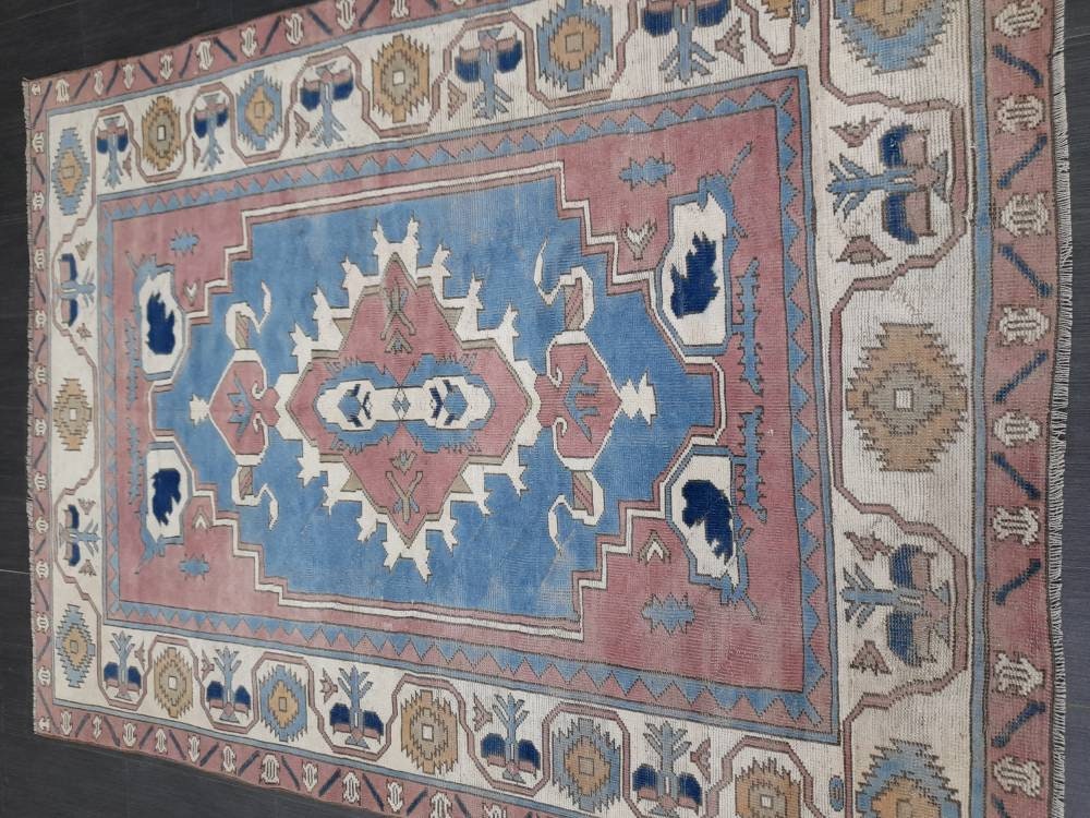 Blue Distressed Wool 5.6 x 7.8 RUG TURKISH Rug Vintage Oriental Rug Vintage Rug Oushak Rug Hand Made Rug Vintage Hand Knotted Turkish Rug