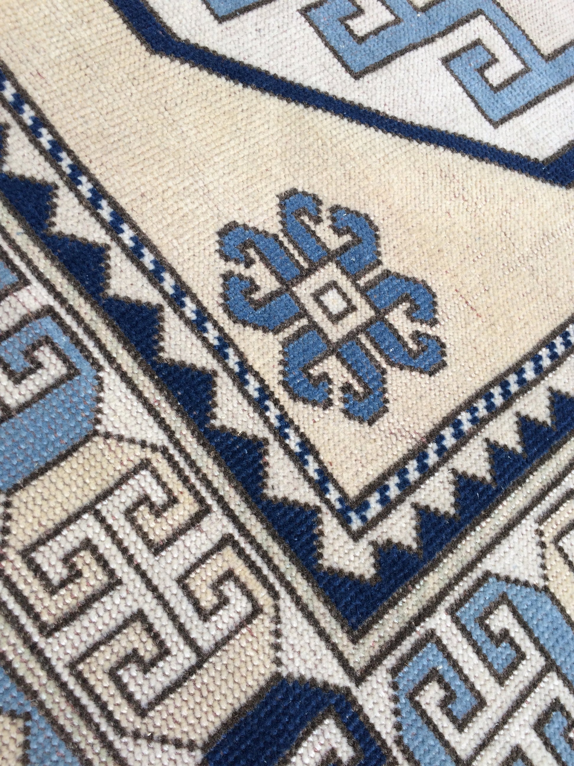 *A vintage handmade Turkish rug made of hand spun wool and double knotted on sturdy cotton foundation,