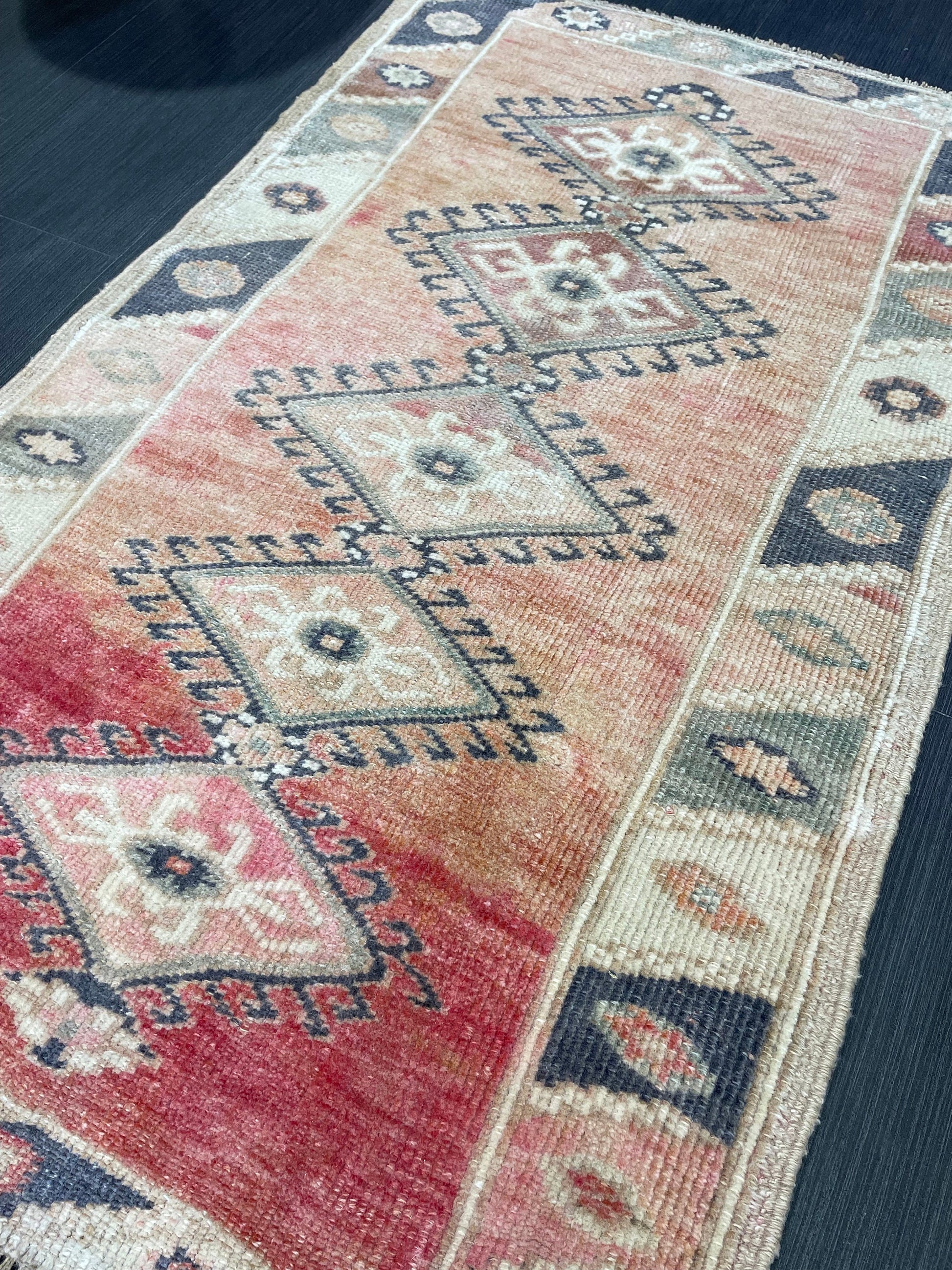 *A vintage handmade Turkish rug made of hand spun wool and double knotted on sturdy cotton foundation,