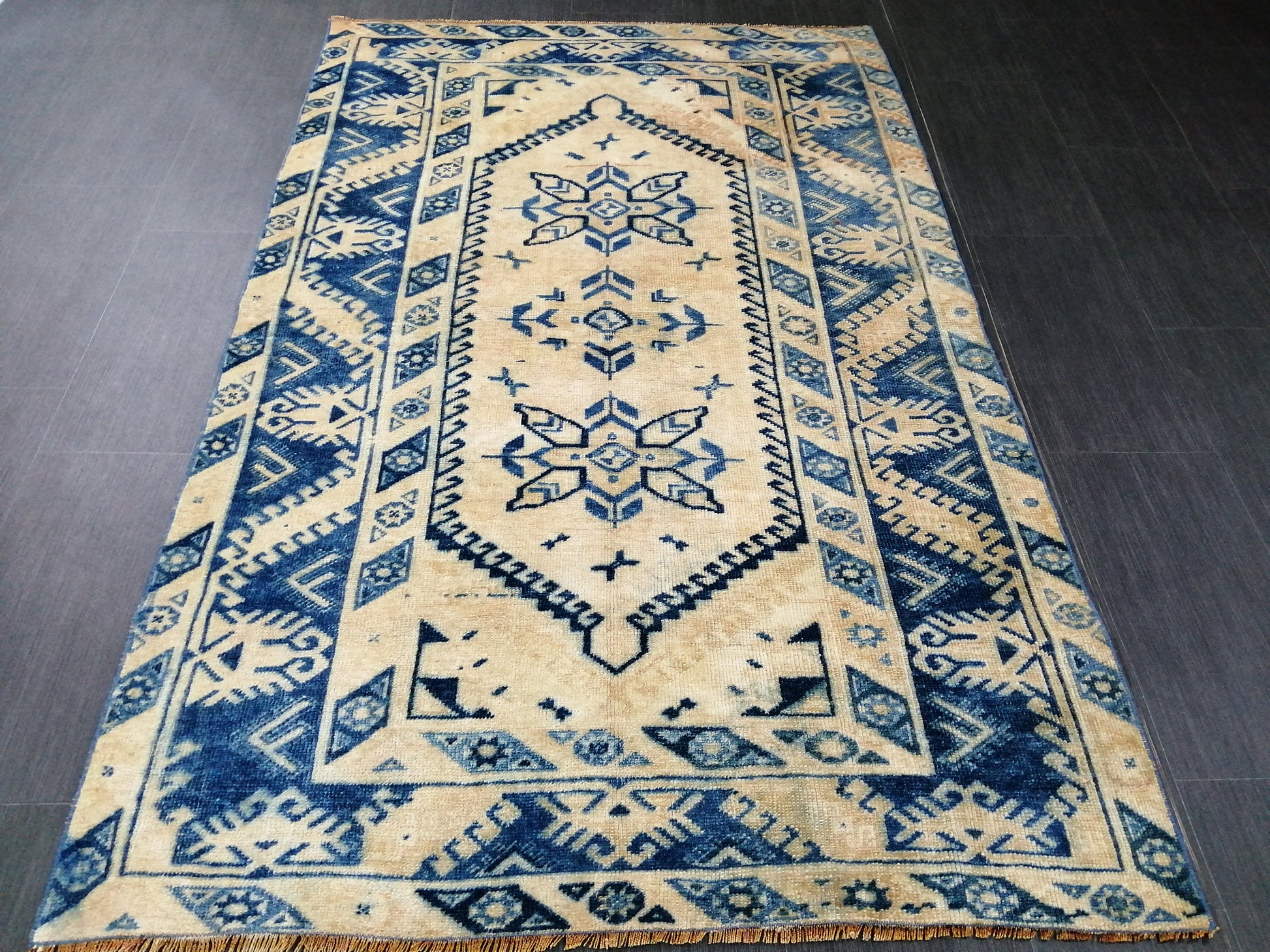 Blue Vintage Rug OUSHAK RUG 6x3.9 TURKISH Oushak Rug Vintage Oushak Runner Rug Vintage Runner Rug Wool Oushak Rug Hand Made Rugs