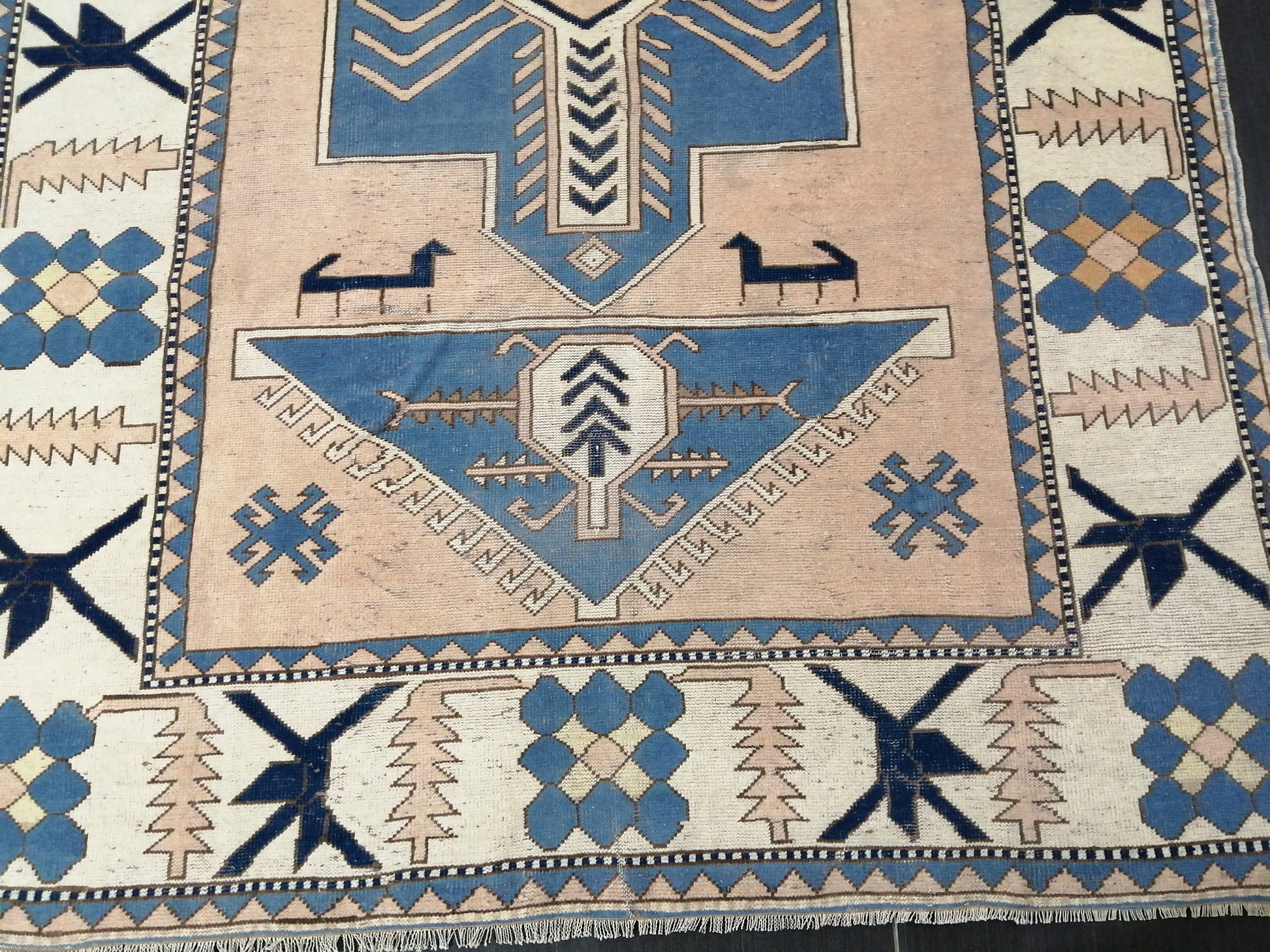 *A vintage handmade Turkish rug made of hand spun wool and double knotted on sturdy foundation,
