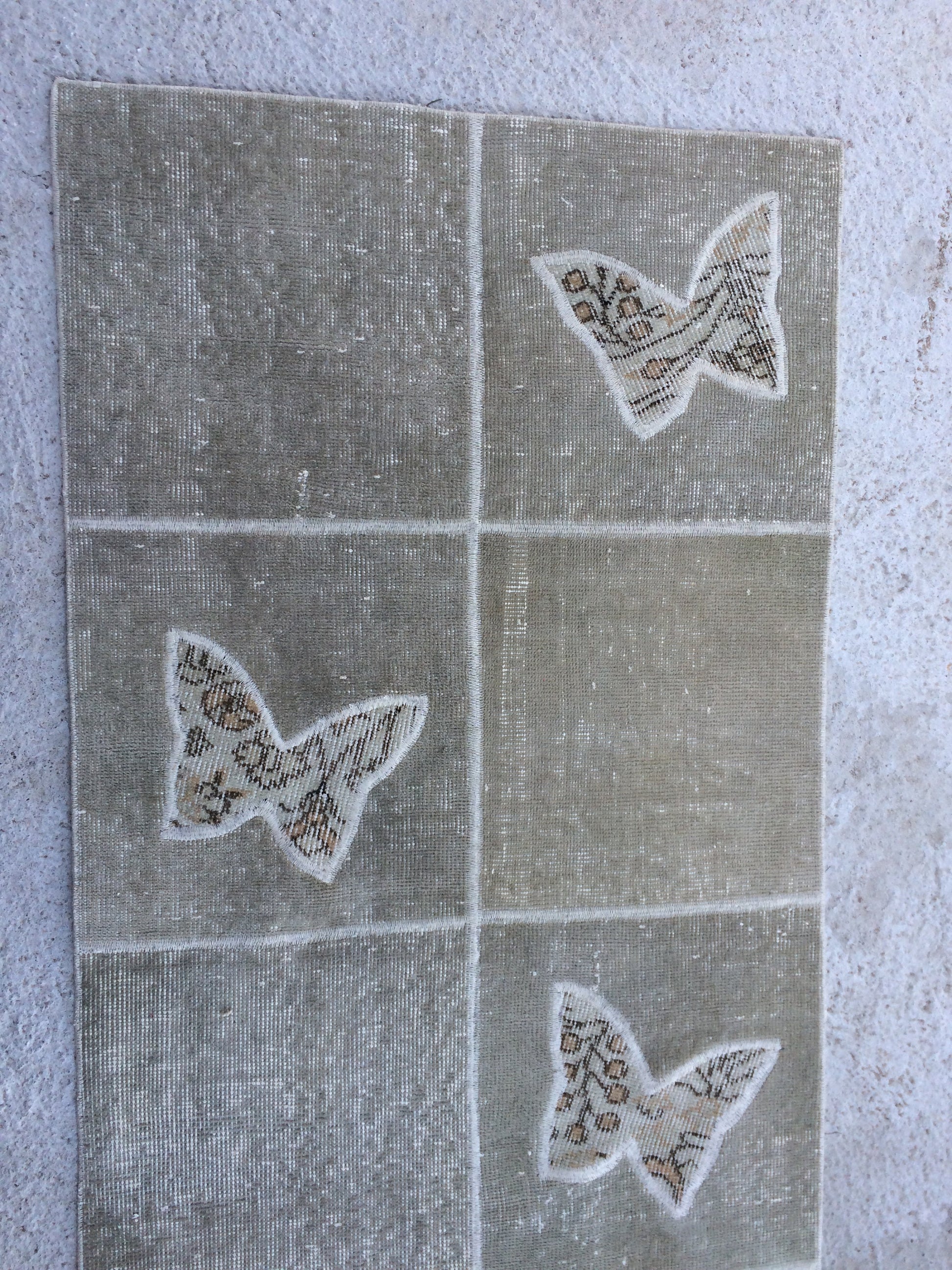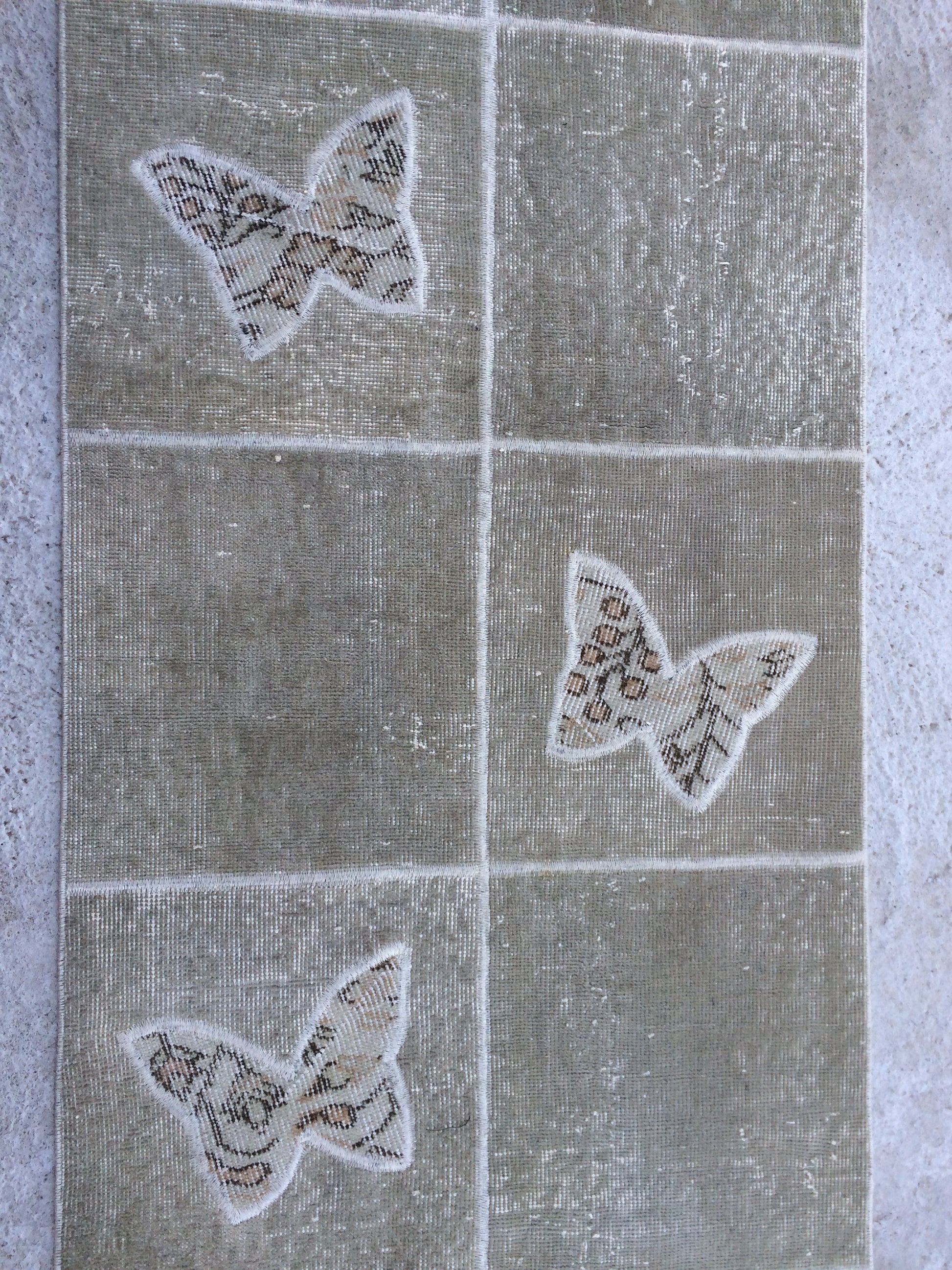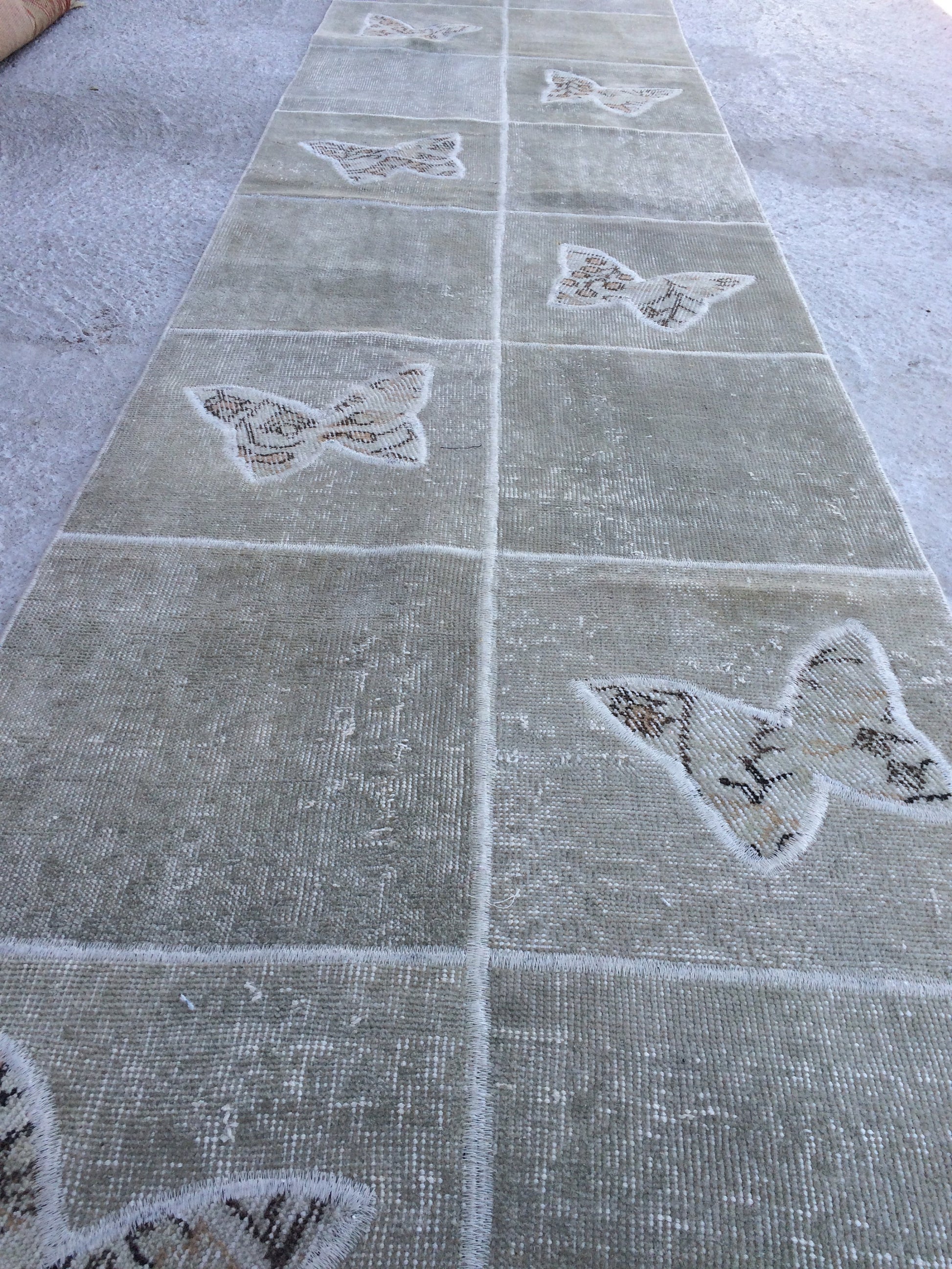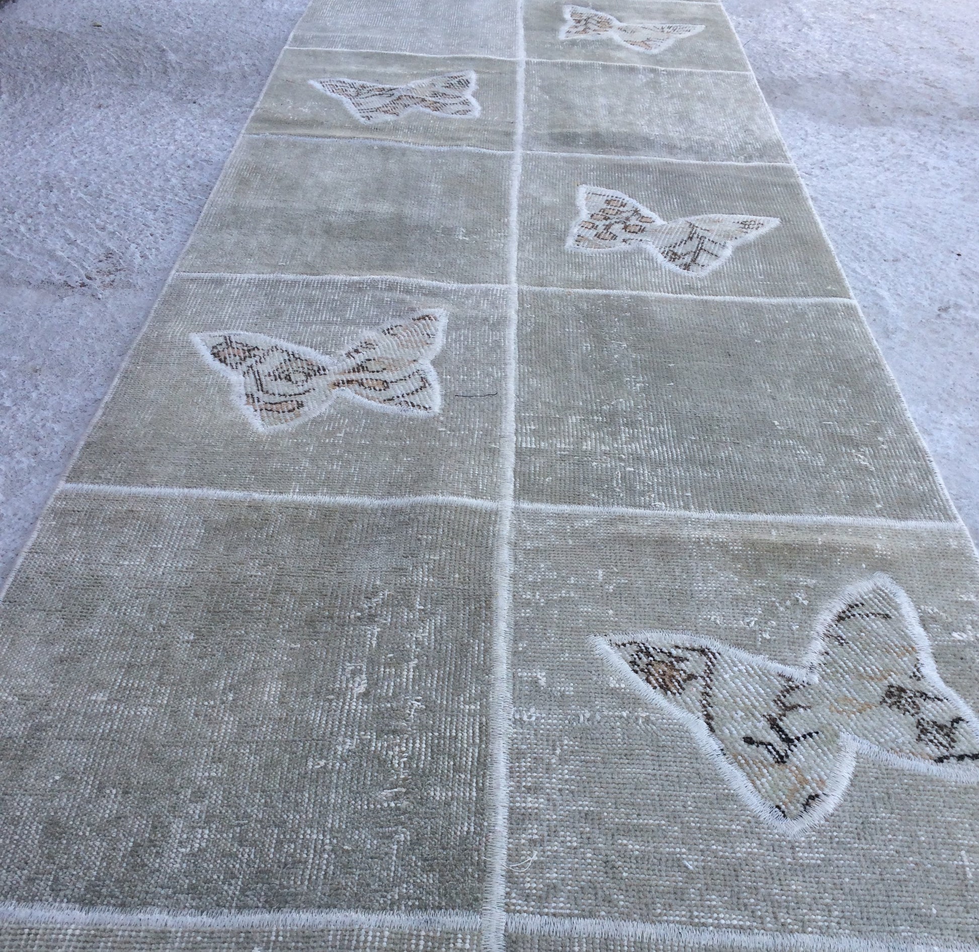Butterfly RUNNER Rug, Vintage Patchwork RUNNER Rug, Bohemian RUNNER Rug Oushak Rug,Hand woven Rug animal Motif, Oriental Carpet Runner