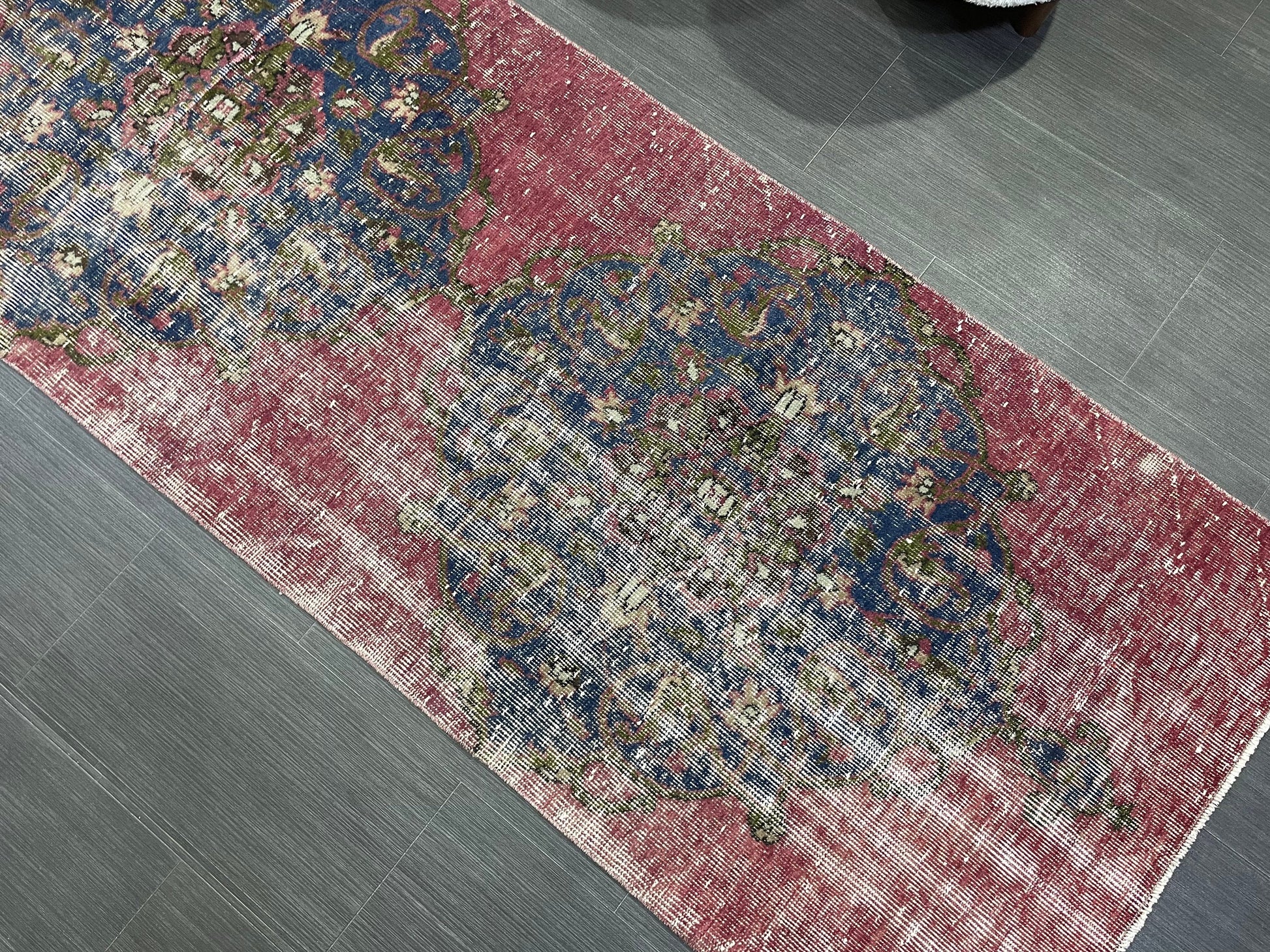 DISTRESSED Oushak Runner Rug, Turkish Runner 2.9 x 12.2 Rug, Vintage Runner Rug, Hallway Runner Rug, Kitchen Runner Rug, Wool Runner Rug