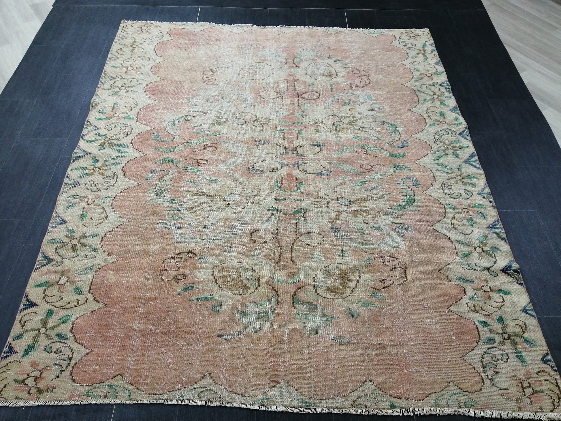 Distressed Vintage Rug 6.2 x 7.4 Hand Made Rug, Antique Rug, Rustic Rug, Floral Rug Turkish Rug, Farmhouse Rug, Vintage Rug, Wool rug