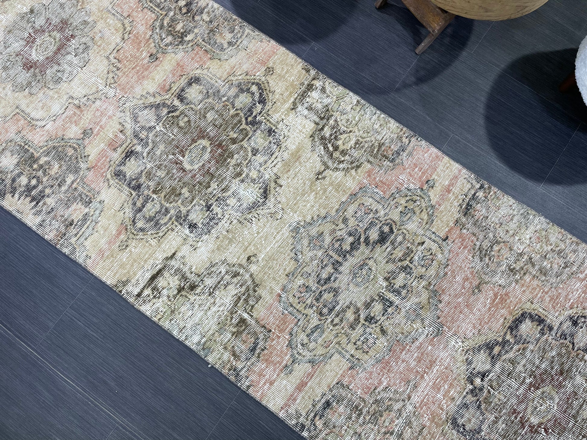 Distressed VINTAGE Rugs, Handmade Runner Rug, Oushak 2.7 x 7.6 Rug, Rustic Runner Rug, Antique Rug, Turkish Rug, Farmhouse Rug, Wool rug