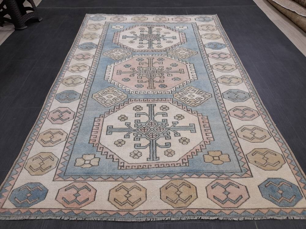 Distressed Wool Hand Made Rug Vintage Oushak Rug Blue 5x8 Oriental Rug, Rug Vintage Turkish Rug, Farmhouse Rug Vintage Rug Living room Rug