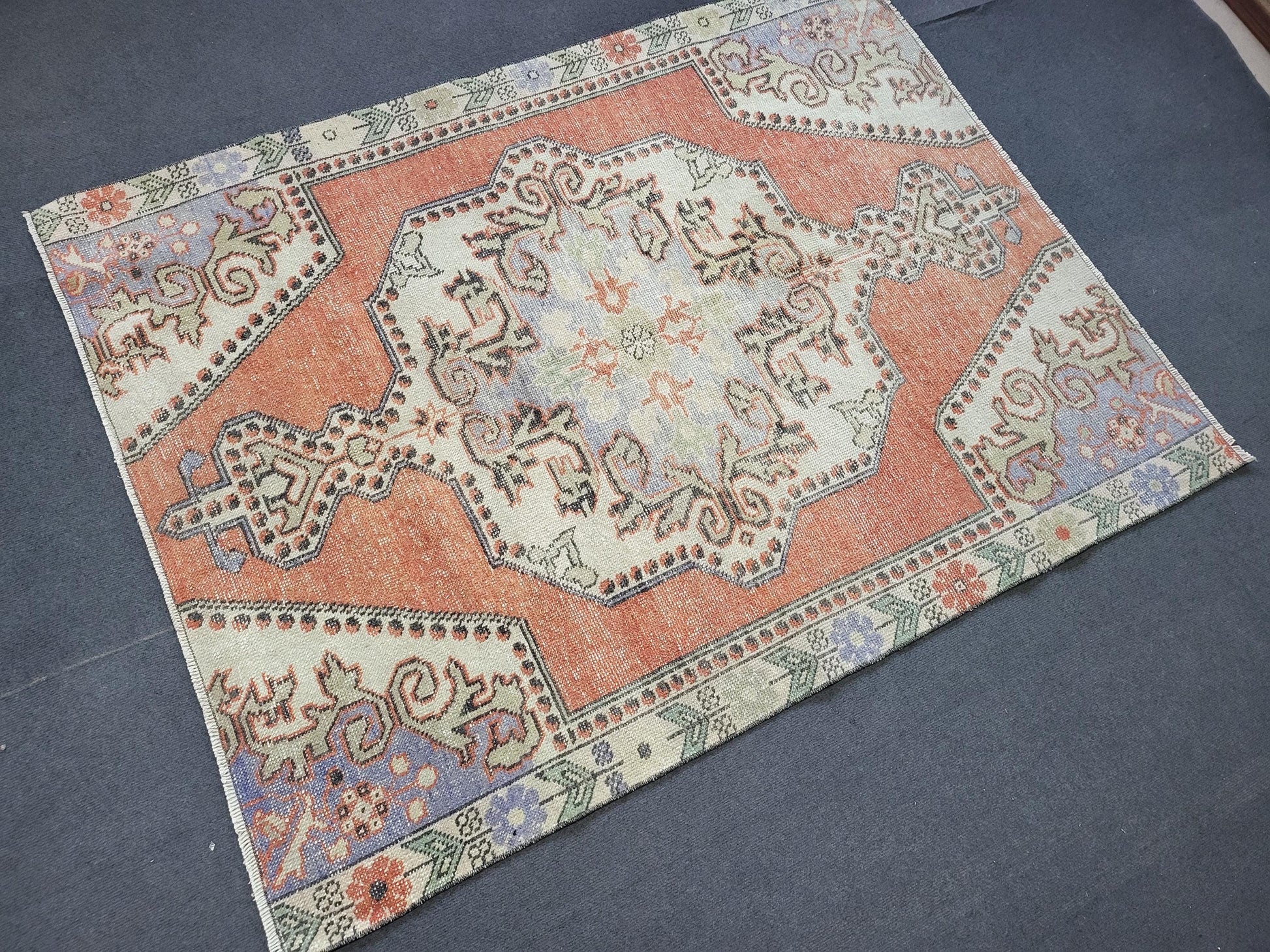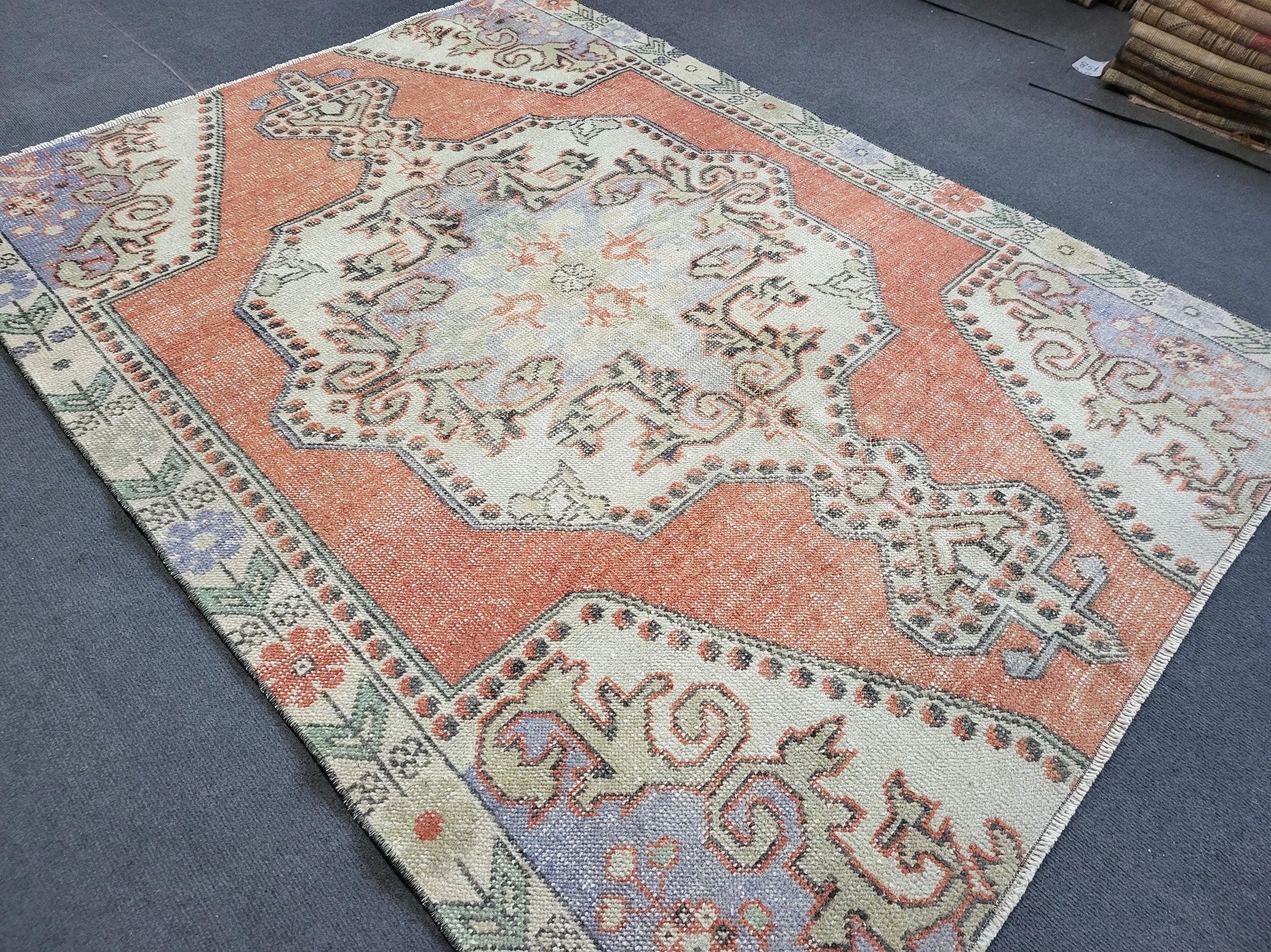 Distressed Wool Rugs, 4.3 x 5.8 Vintage Handmade Rug, Oushak Rug, Turkish Rug, Farmhouse Rug, Vintage Rug, Wool rug Oriental Rug