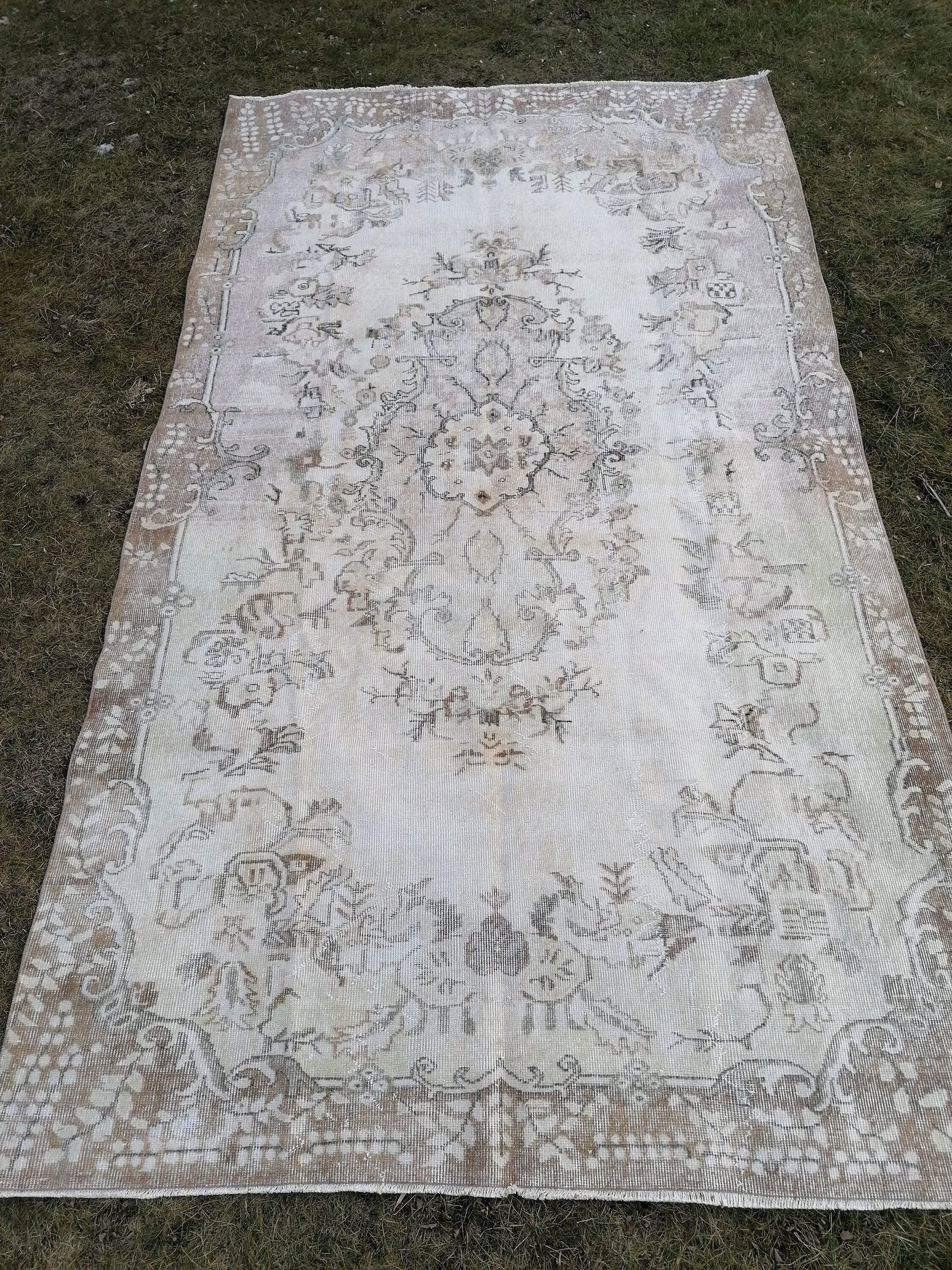 Faded oushak rug 6.2 x 10.4 muted turkısh rug, neutral vıntage oushak rug,